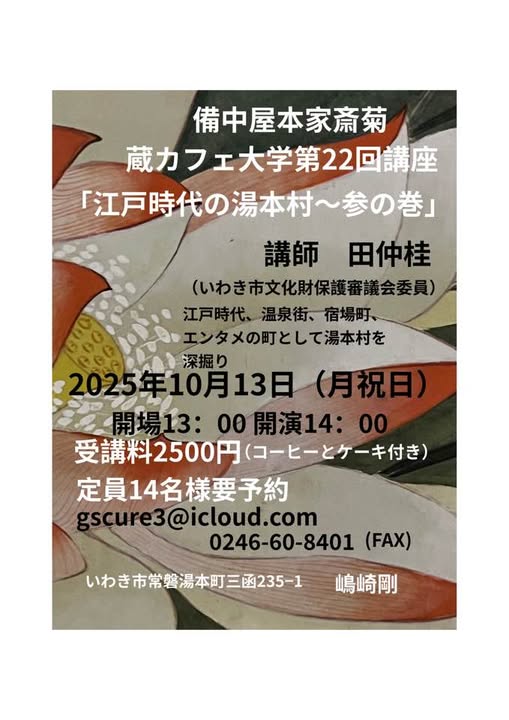 管理人個人記録 ●蔵カフェ大学第22回講義‐江戸時代の湯本村~参の巻‐2025.10.13