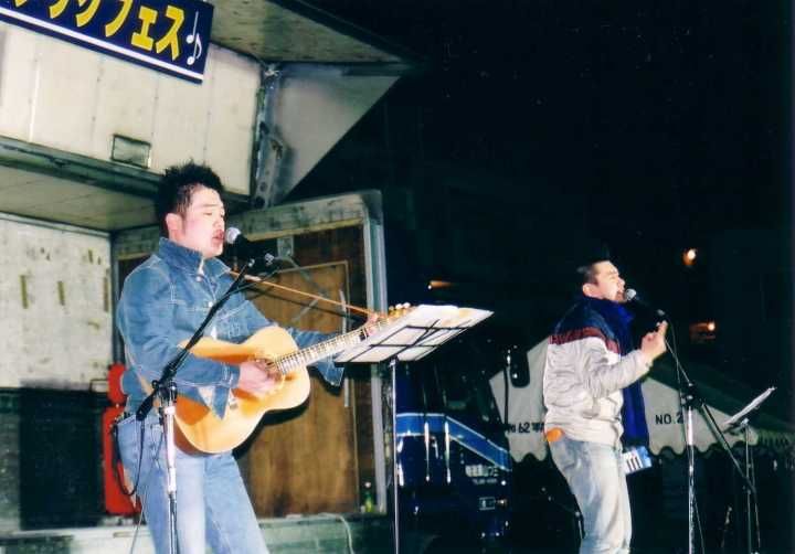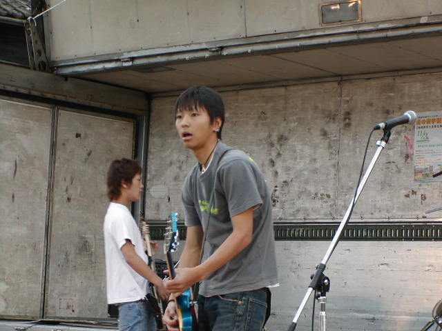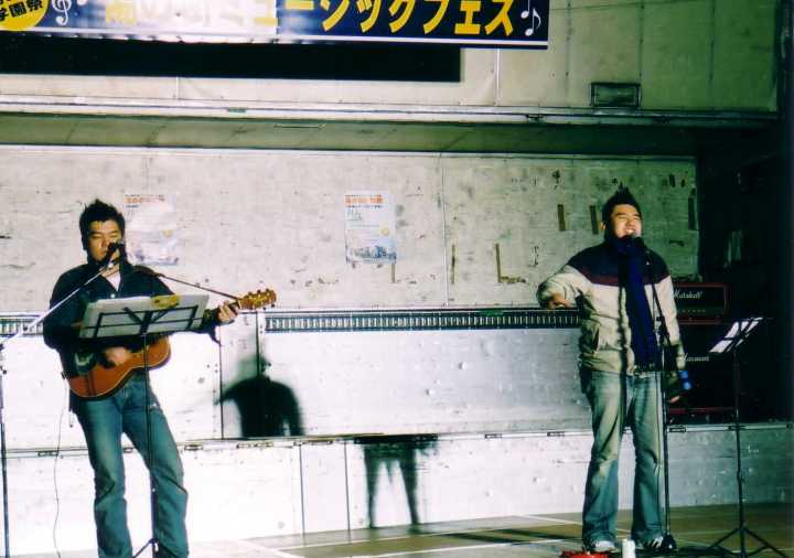 本格的に暗くなって、イベント最後に登場は「隼・ハヤブサ」。この二人組みの一人(写真右側)は湯本出身のようで、客席から暖かい声援がかかりました。いやー、気持ちいいいです。暖かくて・・・。夕方近くから、ほんとに気温が低くて寒い感じでしたけど、寒さのことも忘れてしまいそうな、ポカポカなステージでした。