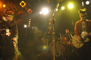 @NEO PSYCLONEZ/ネオサイクロンズ この日のトップに登場は、サイコビリーバンドのネオサイクロンズ。しばらくぶりに見ます(汗)。 いわゆるコスプレ的な楽しみ方が可能なジャンルなのかもしれませんねえ、 サイコビリーというジャンルは・・・コアなファンに怒られちゃうかな(苦笑) トリオという渋い編成で、カッコよく決めてくれます。 ドラムは、某Hさんで、タイトなドラミングを響かせます。 しかし、ヘアスタイルが凄くて、オープニングから、 ロックなフンイキがバリバリ伝わってきます。・・・。 |
