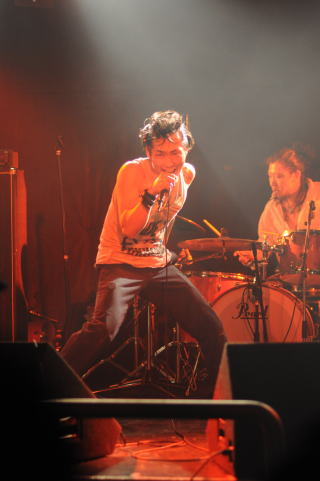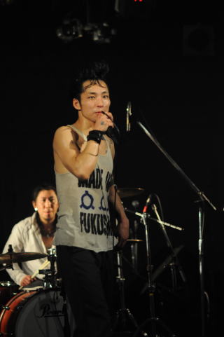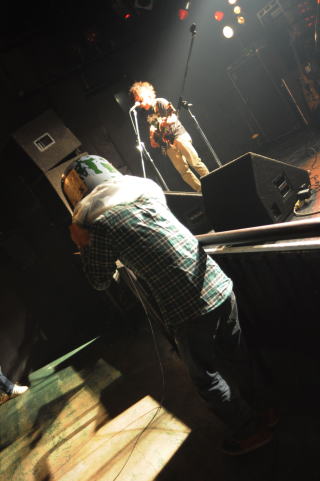 Cマイライト パンクロックと言うよりはロックバンド、又はロックンロールバンドと言った方がシックリくるでしょう。 リーゼントスタイルが、無茶苦茶ステキなボーカルのアサノさんを中心に、 これ以上は無いというくらいの、ストレートで熱いロックを聞かせてくれました 。こういうサウンドスタイルは、今の日本のロックシーンでは少数派の部類に入るかもしれません。 シンプルゆえにセンスを要求される、そんな感じでしょうか? マイライトは My Right、Lightでは無い。このバンド名、重みがありますね。 |