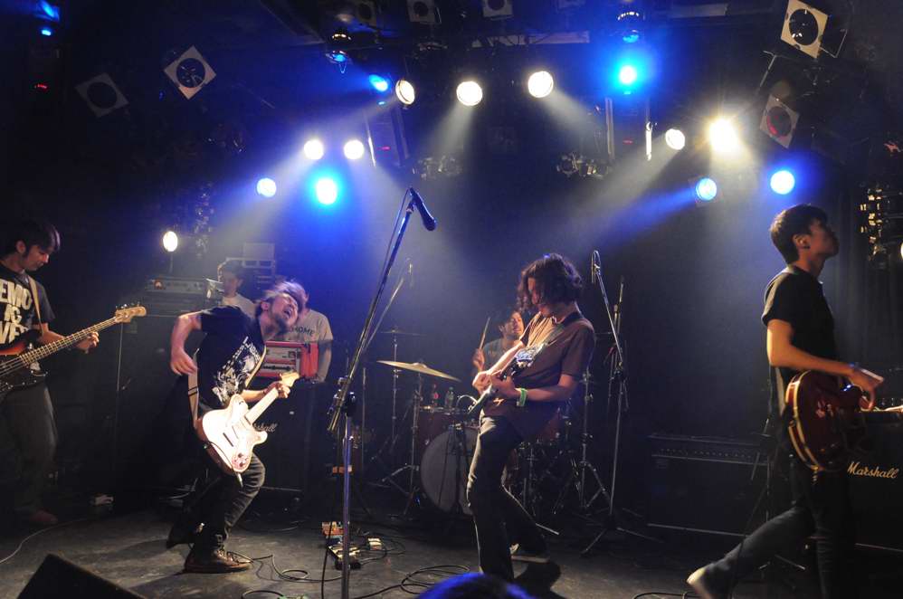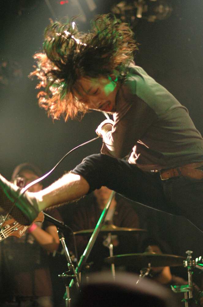 4.noy(東京) ギター2本の5人編成。フロアの盛り上がりが凄かった・・・・ オジサンとしてはビビッてます(汗)。 ポストハードコア的な、難解というか実験的な側面があるバンドなのでしょうが、 ライブパフォーマンスの素晴らしさの前には、ジャンルとかは些細な事です フロアはモッシュと言うのか、体力の自信の無い方は近寄ってはいけません、的な感じでした。 |