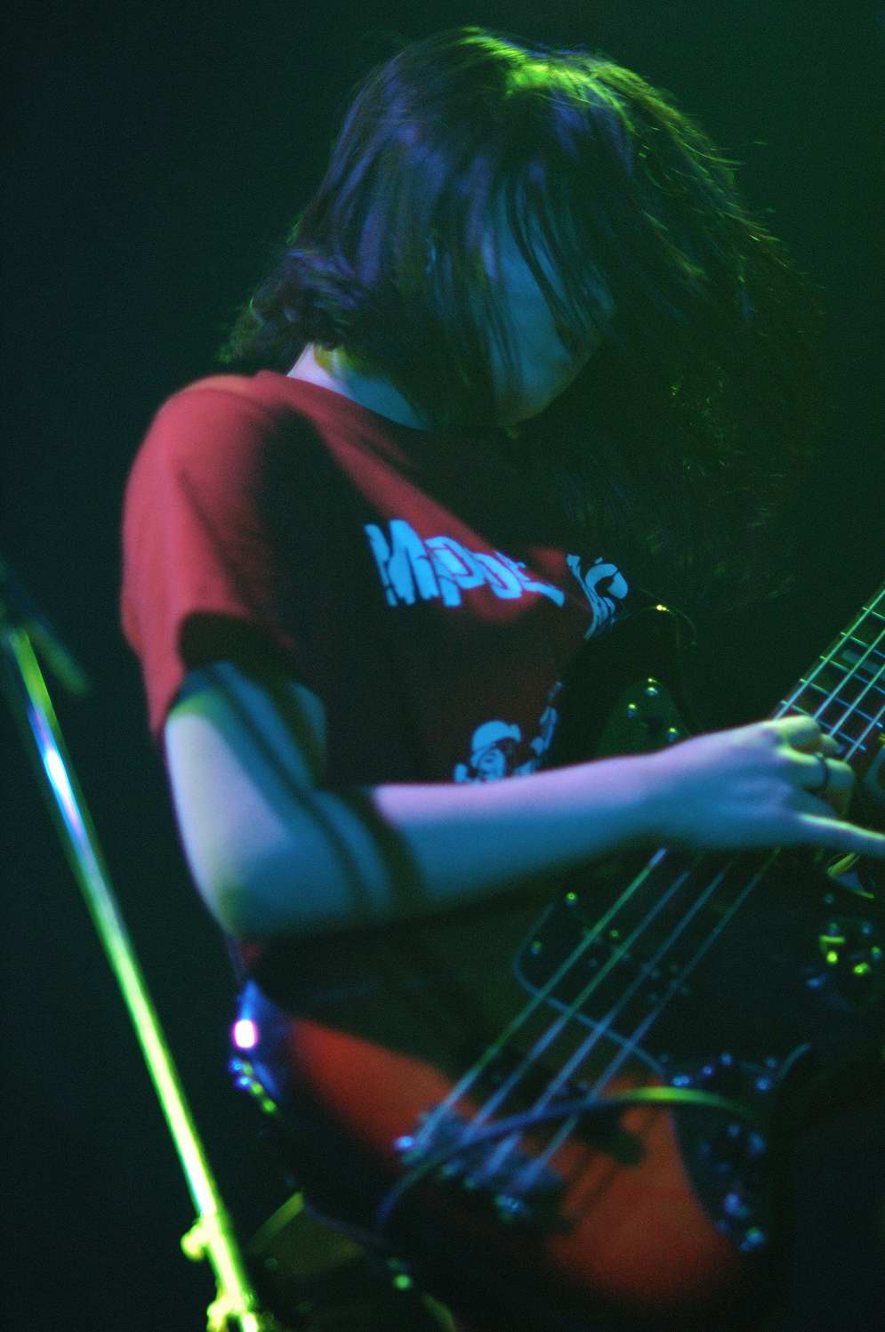 小柄で可愛らしい女性ベーシストは、ピックを使わずに指で弦を弾き、