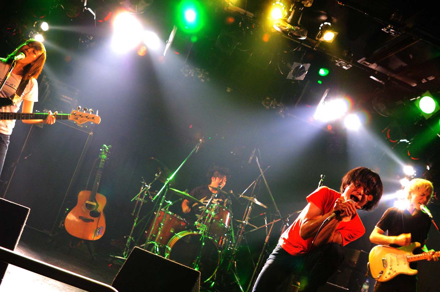 Vo(Gt)、Gt(Key)、Ba、Drの4人編成で、Baは紅一点の美女さま。