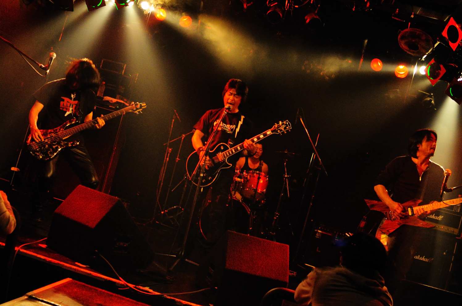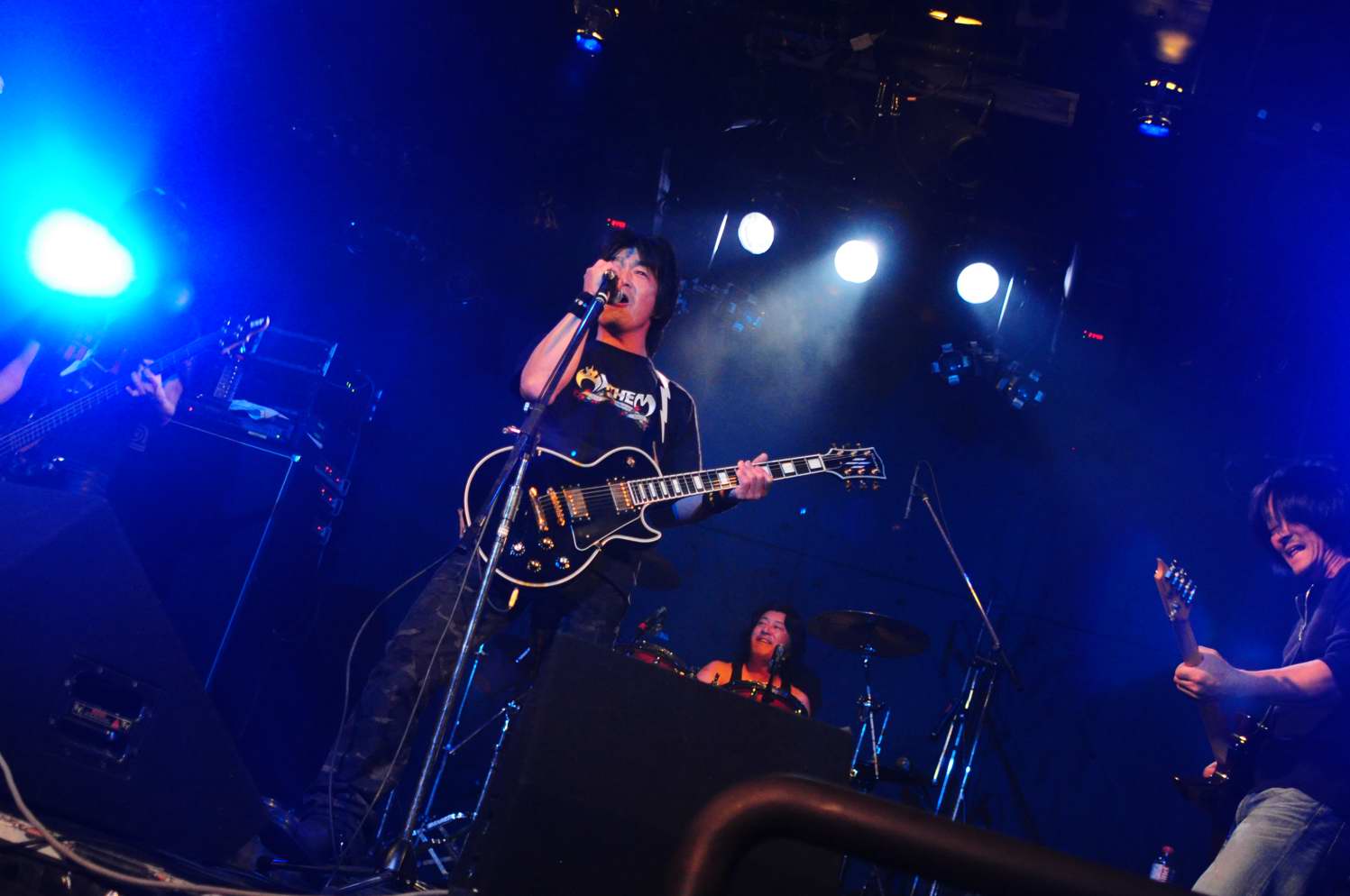(4)Z*零*ERO 御存じ、ゼロさん。 いわゆる、アニメタルのバンドとしてカテゴライズされるバンドになるかと思いますが、 特撮ヒーローモノも聞かせてくれます(苦笑) NAO FAMILYのVo(Gt)のニシヤマさんとは、高校時代の同級生であるという、不思議な(素晴らしい?)縁が、 この日のイベント参加に至ったとのことですが、 年齢を感じさせない、若々しい演奏に元気を貰いました。 ●●年前の高校生時代・・・・。書いてる私も遠い目であります(苦笑) この日の演奏レパートリーは、いつも通りにやっぱり、 コテコテでしたが(苦笑)ゼッ〜〜ット、ですねえ、やっぱり(汗) |
