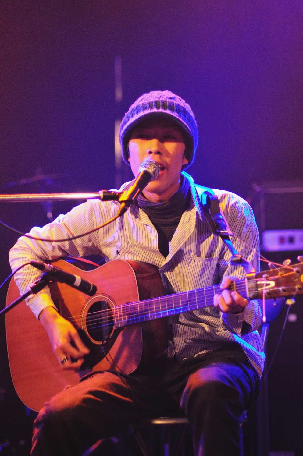 (2)アース 7月に三崎公園で一度、ライブを拝見してます、アースさん。 この日は、メンバーの都合ということで、 2人(Vo(AGt)、Per)での演奏。 本来はトリオ編成のロックバンドとして活動している分けですが、 アコースティックでの演奏でも、全然違和感無いですね。 地味?なのかもしれませんが、説得力と安定感は、若いのに(失礼)、 なかなかに立派なモノです。 Vo(AGt)さんは、来春の就職が決まっていて、いわきを離れるようですが、 音楽活動は、長く続けてもらいたいですね。 |