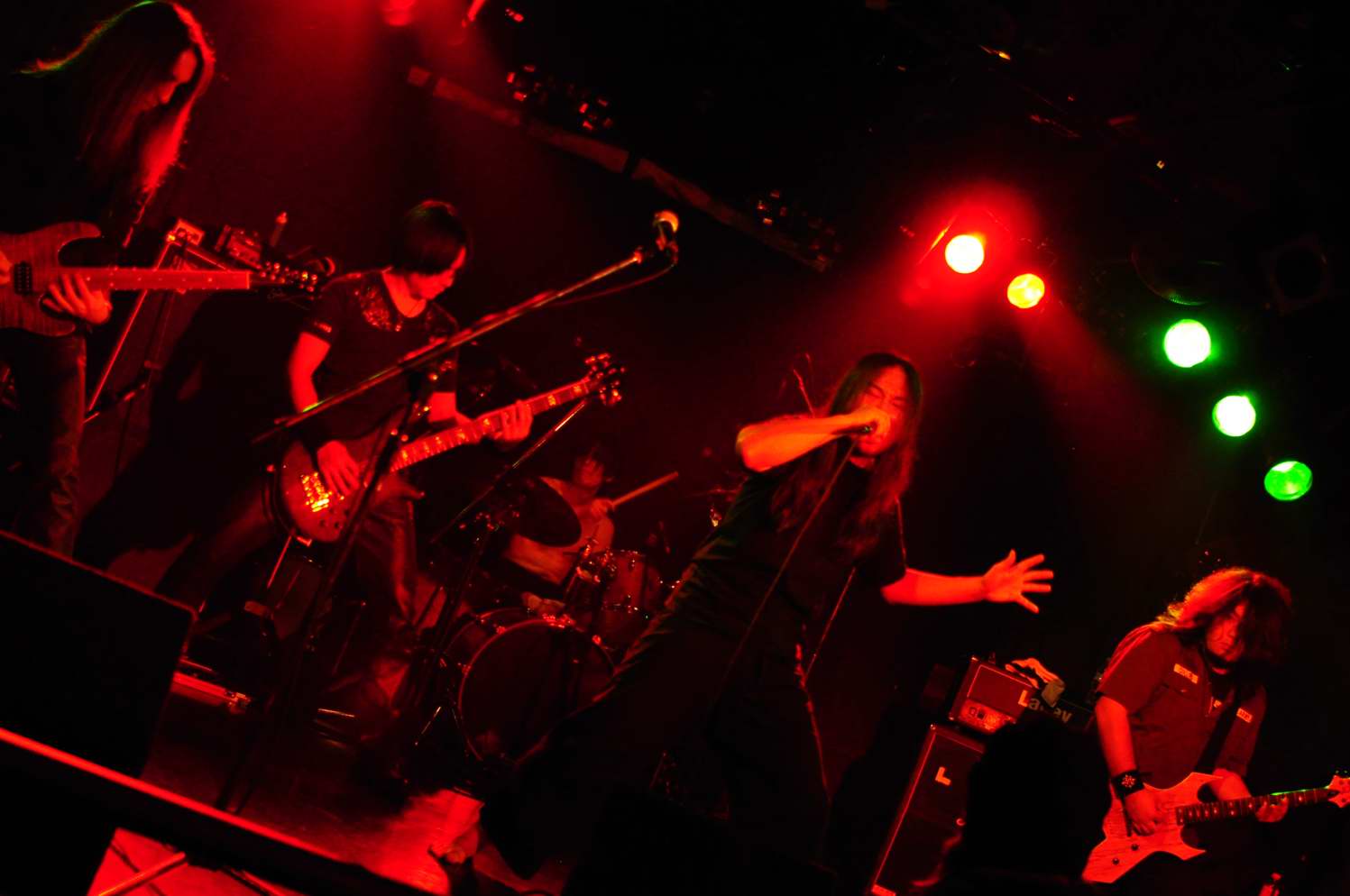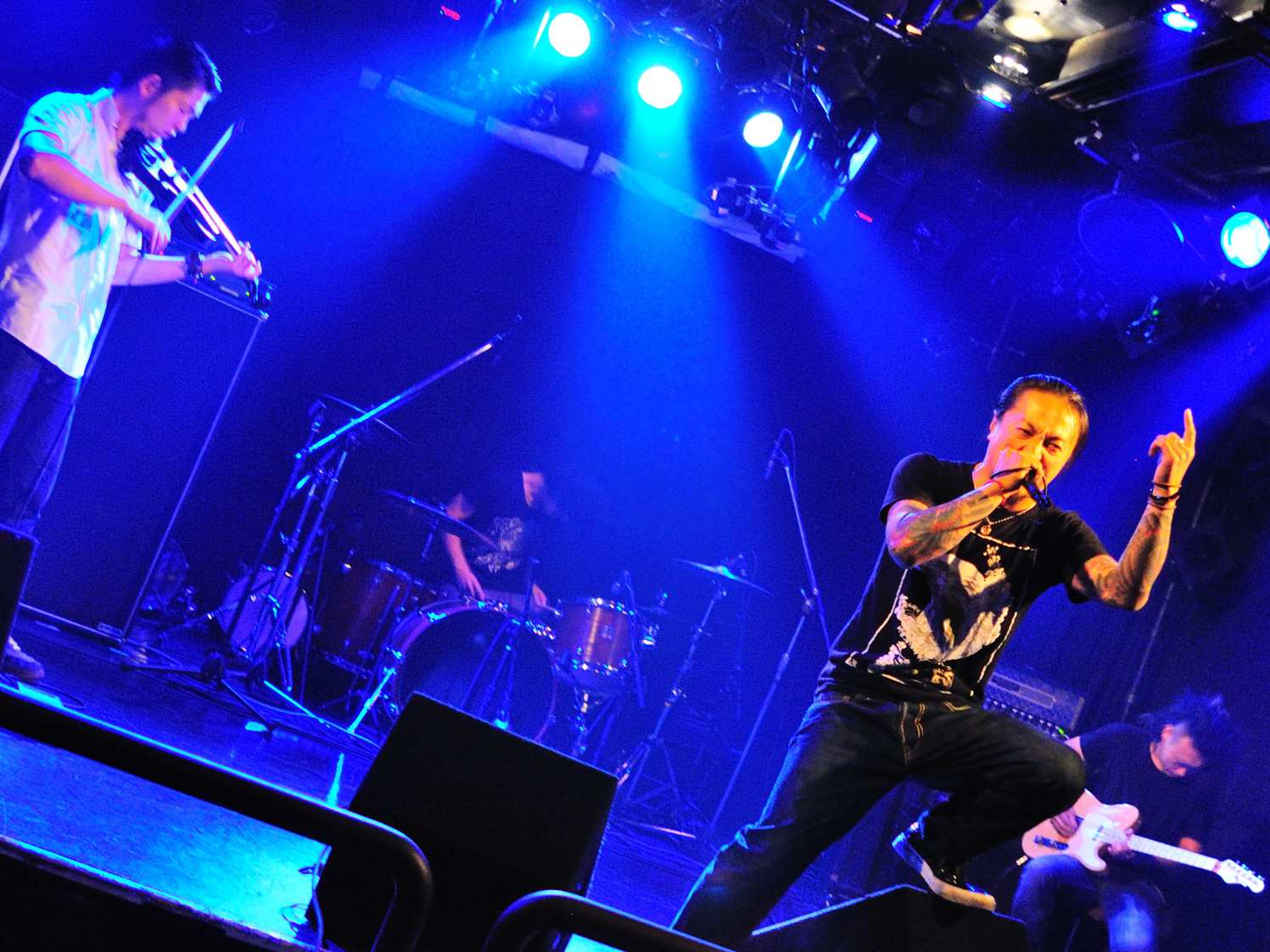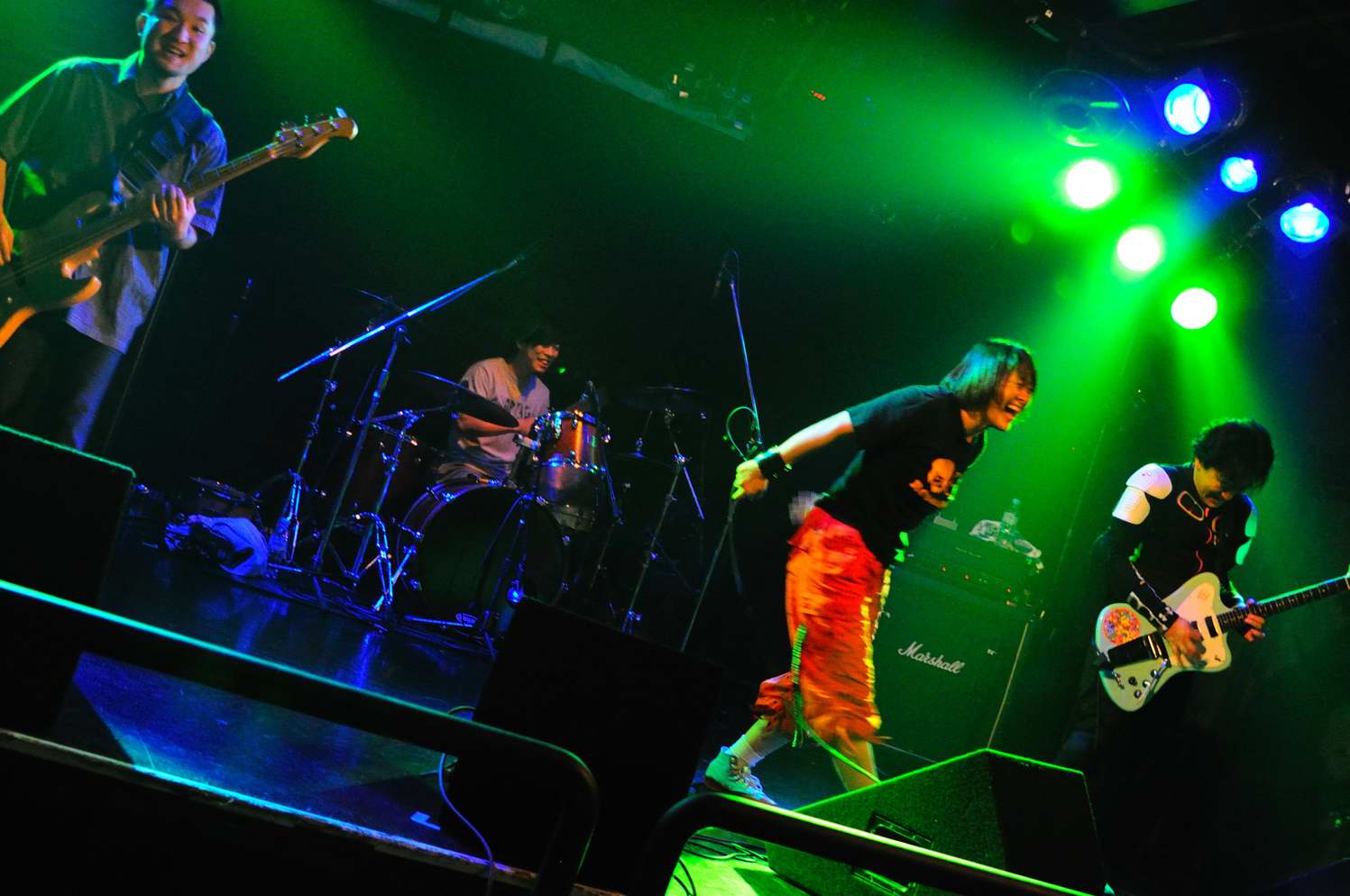前のバンドと同じGt2本を擁する5人組。なのですが、フロントの3人が、一転、スリムな方々で