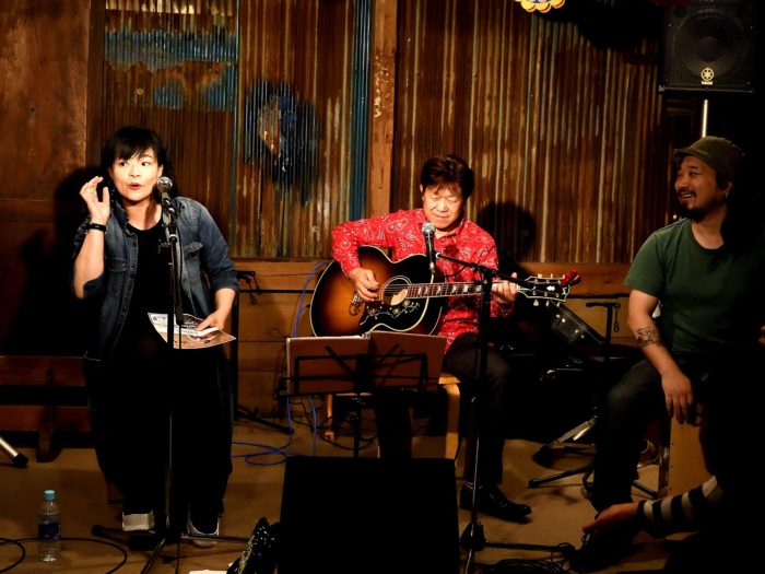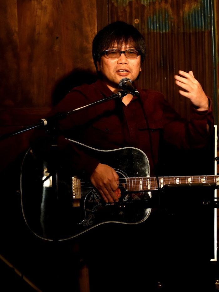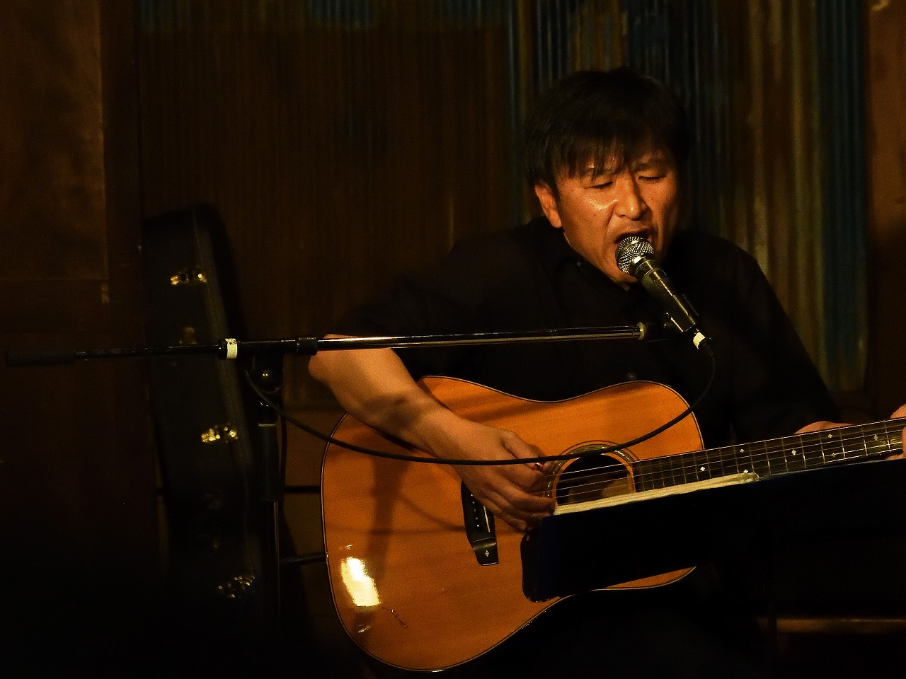 東京から登場の御二人。この雰囲気はただ者じゃあないですし、ただ事じゃあないです。歌詞と歌の見事にリンクしており、社会性の高さというか、現代社会への冷静な視線を感じさせます。バンドスタイルでも見たい御二人です。 |