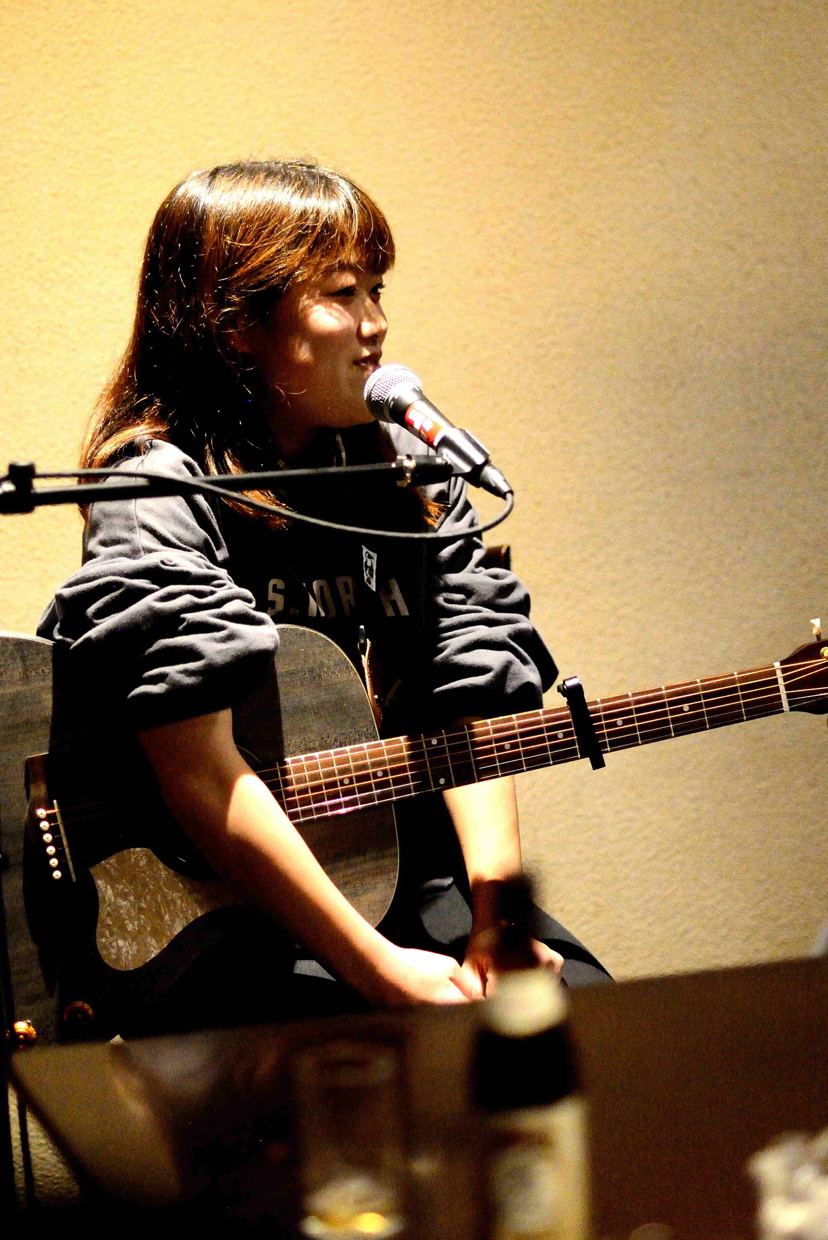| (1)鈴木爻 ”すずきこう”さんのライブを拝見するのはかなり久しぶりのことです。ソニックで一度だけ数年前に拝見して以来。地元の大先輩ミュージシャンのミカタケイゾウさんの代表曲「もう僕は終わりを考えたりしない」のカバーを含むぜん4曲の演奏。残り三曲は当然彼自身のオリジナル曲(多分)ですが、ここ数年の「成長」を十二分に感じさせるものでした。あどけなさが残る?と言ったら失礼かもしれませんが、穏やかさと芯の強さが同居したような素敵な笑顔でていねいに歌い語る姿に魅了された数十分でした。 |