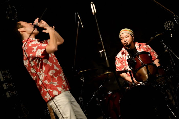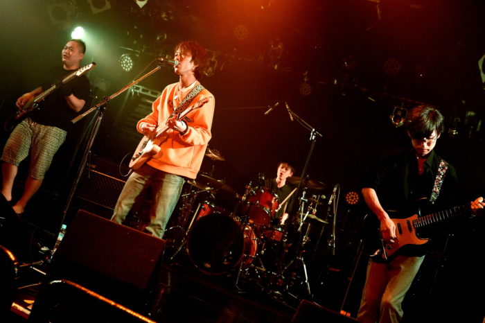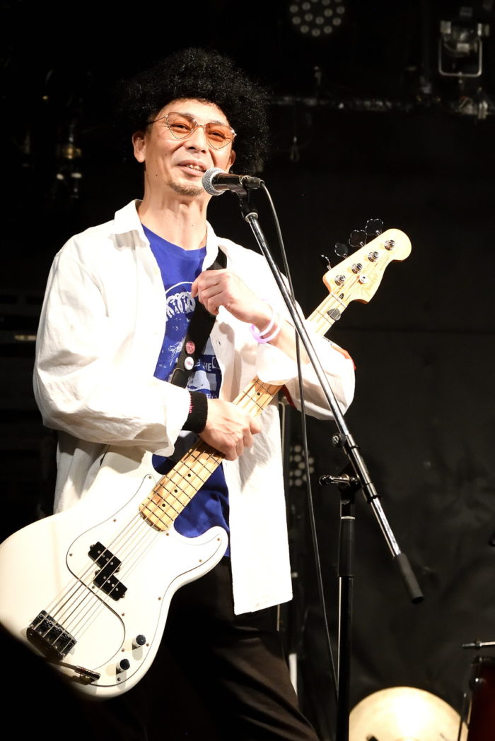 | (1)Spa Resort Nucleans 我らが地元の某スーパーマーケットをテーマ?とした曲でスタート。彼らの曲は一曲一曲のテーマというか、成立背景がとても分かり易いのですが、〇ル〇、〇ル〇、と連呼するこの曲も、地元愛に溢れた記憶に残る一曲ですね、”ゲ〇〇ツさいかどう”を高らかに歌ったかと思えば、下手したら〇性蔑視と理解されるかもしれない、ユーモアあふれる曲「〇〇〇はみんなヤ○○○だ」とか、問題作ばかりで一気に突っ走ります。しかし、しかしですよ・・・・ラストに新曲として披露した曲の叙情性にやられましたよ。 |