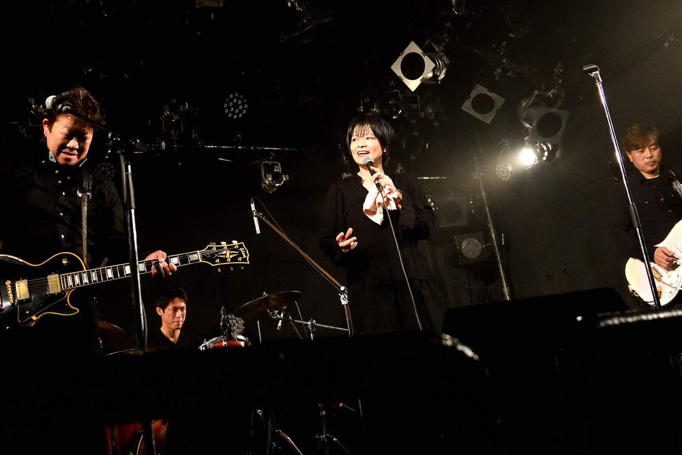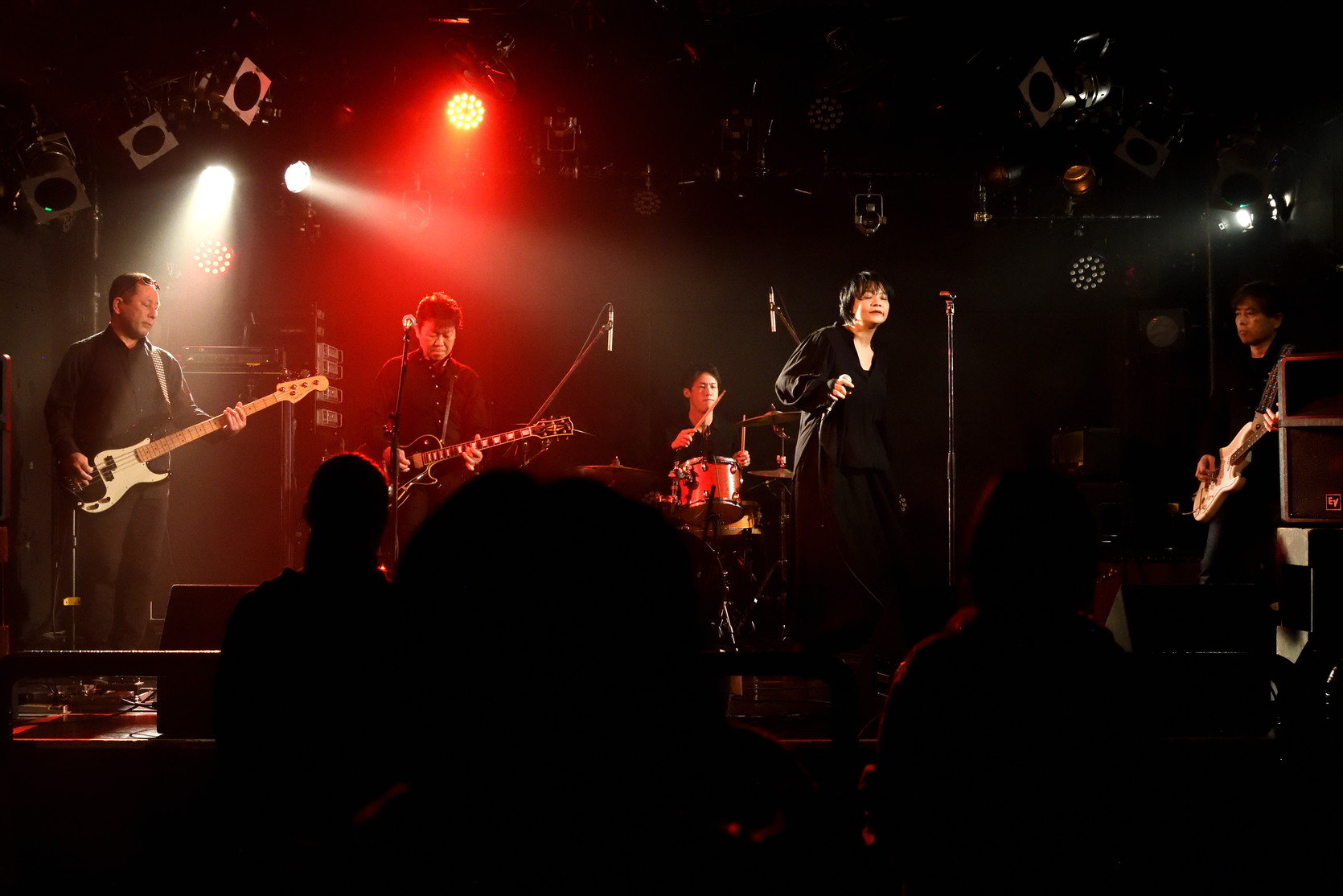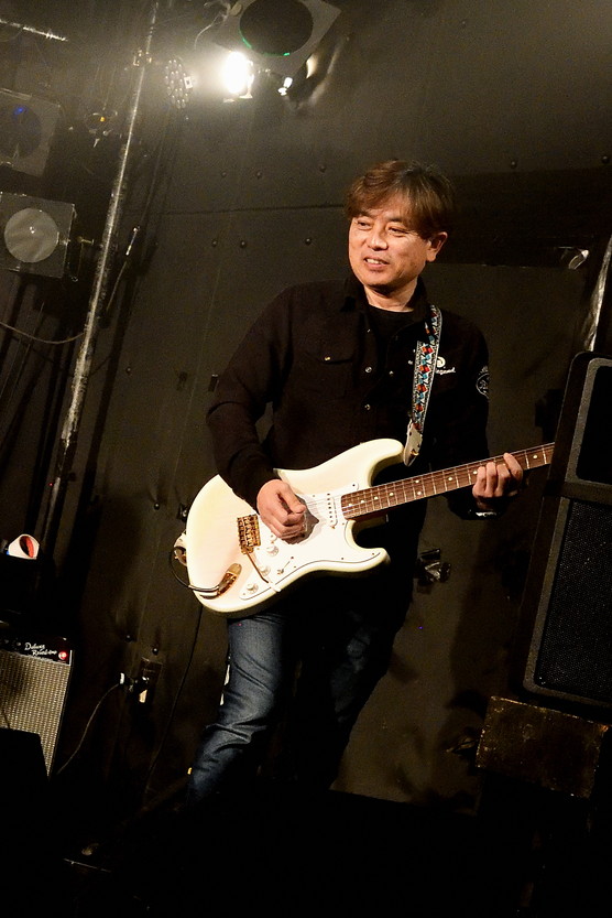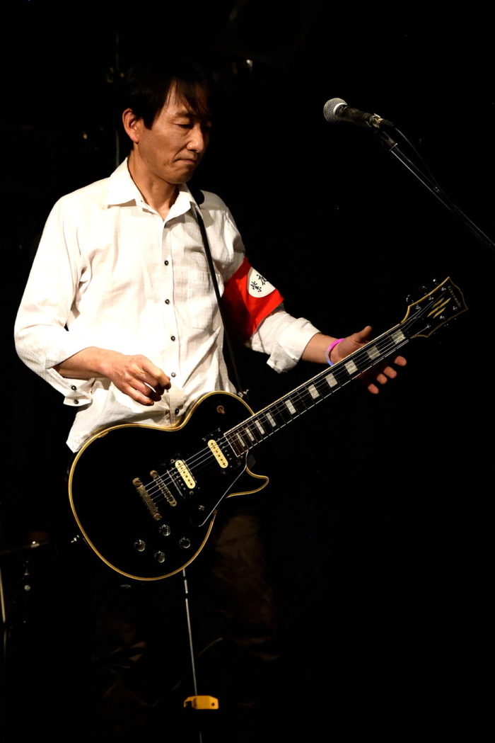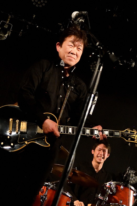 | (7)TSUMUJI-KAZE 女性ボーカルのクミコさんを中心にギター2本を擁する5人編成。ドラマーさんが、一人だけ世代が違うようですが(若い)、他の4人のメンバーは、フィフティーズ。ボーカルクミコさんのMCの楽しさが、このバンドの魅力の一つだと思いますが、前の前に出演の”鳳蝶”さんに関する感想に多いに共感してしましまいました(苦笑)。ラストのグッバイ東京、2本のギターのコンビネーションに痺れました。 |