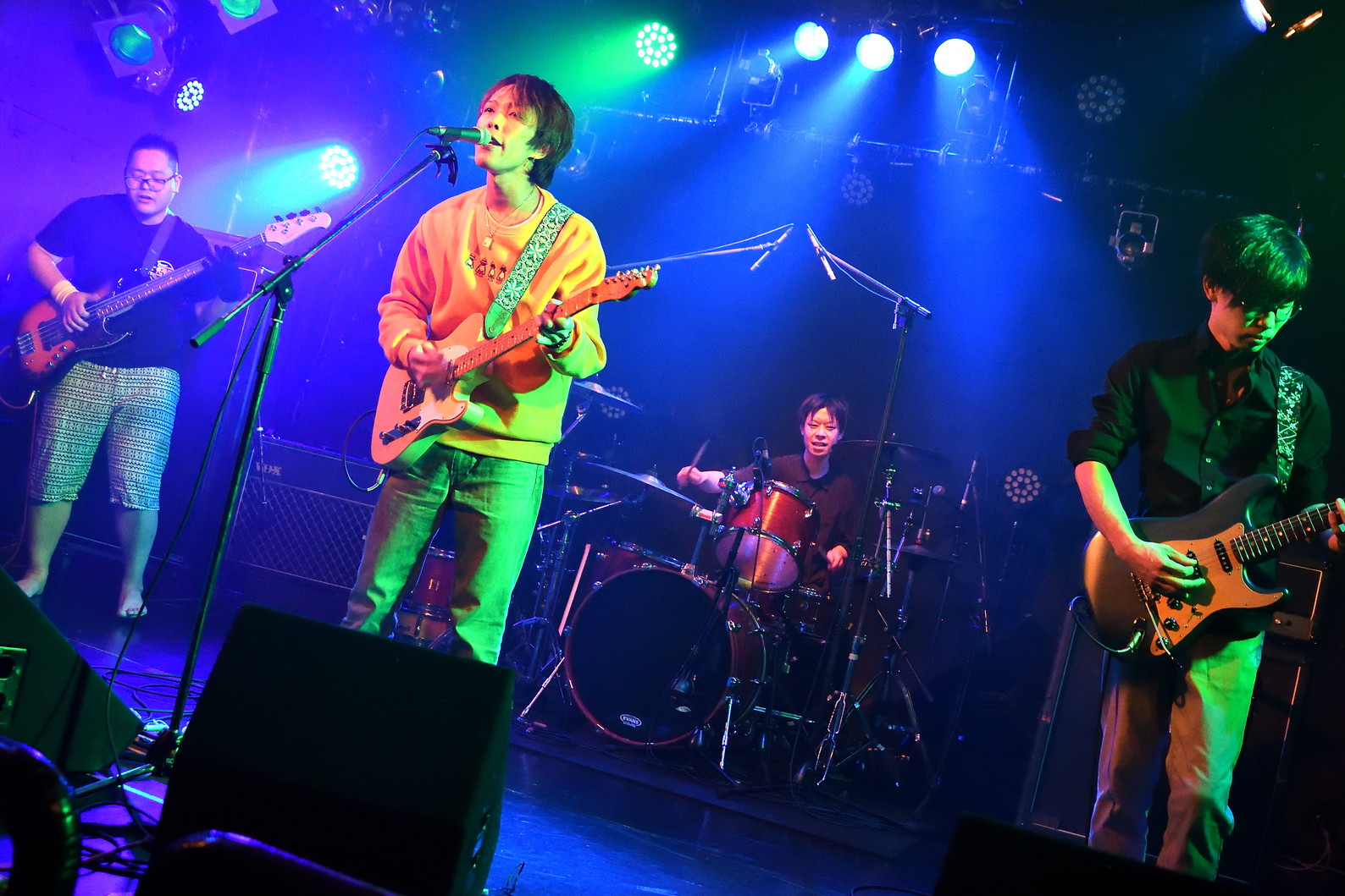 | (5)鳳蝶 Vo(Ba),Gt,Drのトリオ編成でGt,Drが女性という男女混成編成。メンバー自身は、自分たちを「あげは」と呼んでいましたが、正式バンド名が「あげはちょう」なのか「あげは」なのかは未確認。ひとことで形容しれば、透明感がある、でしょうか。令和のバンドですね・・・と昭和世代のアタクシはしみじみと思うのでした、 |