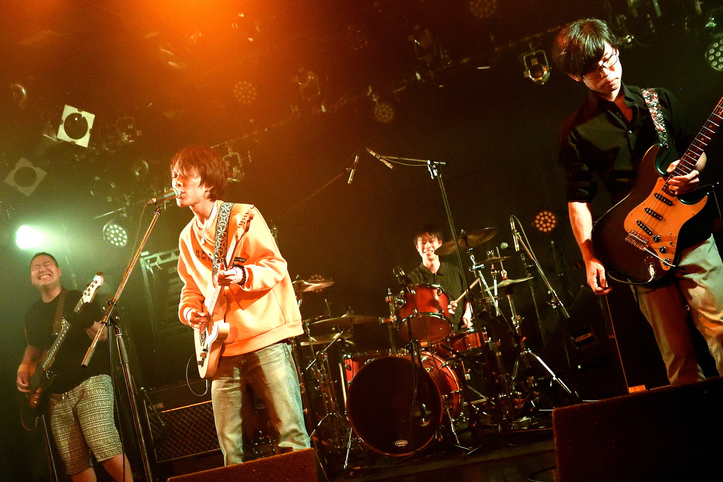 | (1)Spa Resort Nucleans 我らが地元の某スーパーマーケットをテーマ?とした曲でスタート。彼らの曲は一曲一曲のテーマというか、成立背景がとても分かり易いのですが、〇ル〇、〇ル〇、と連呼するこの曲も、地元愛に溢れた記憶に残る一曲ですね、”ゲ〇〇ツさいかどう”を高らかに歌ったかと思えば、下手したら〇性蔑視と理解されるかもしれない、ユーモアあふれる曲「〇〇〇はみんなヤ○○○だ」とか、問題作ばかりで一気に突っ走ります。しかし、しかしですよ・・・・ラストに新曲として披露した曲の叙情性にやられましたよ。 |