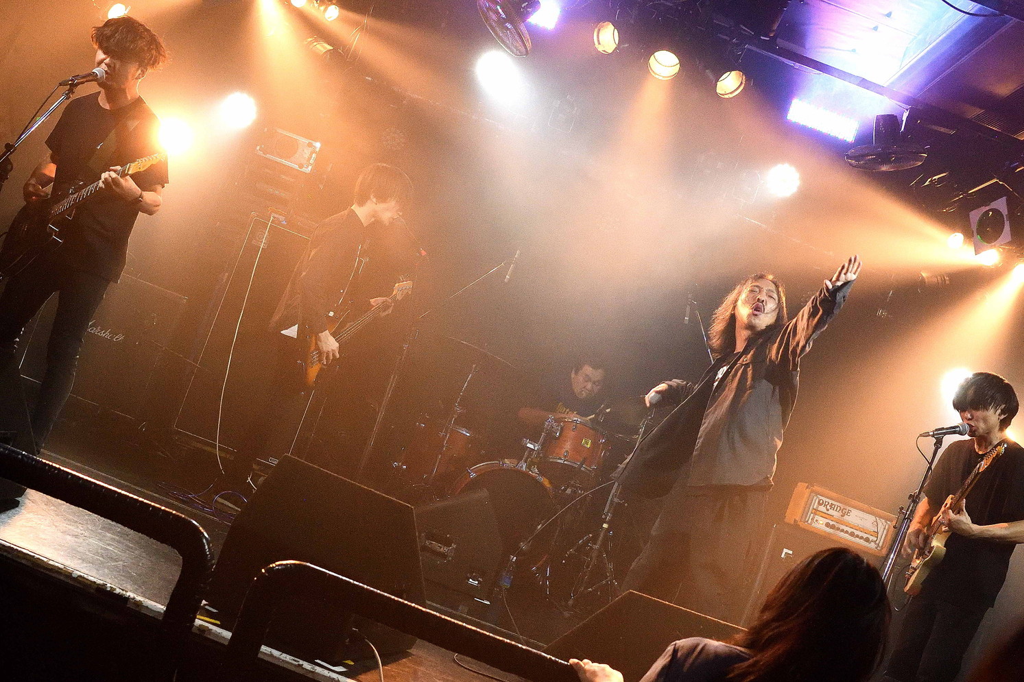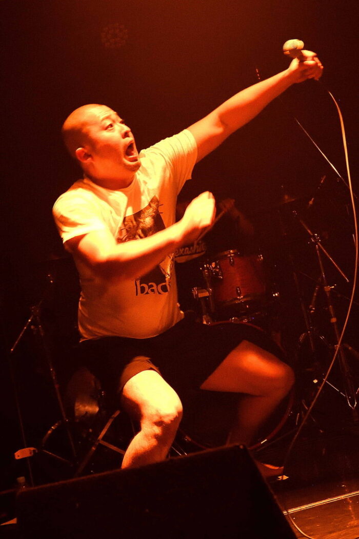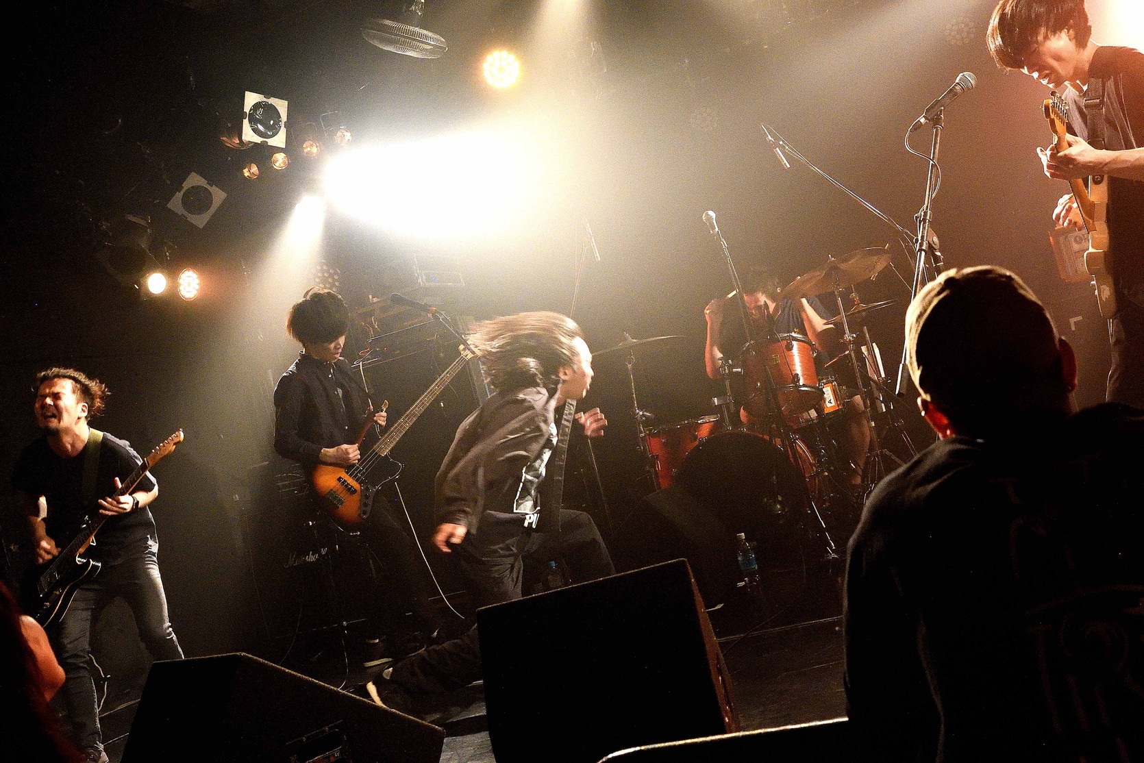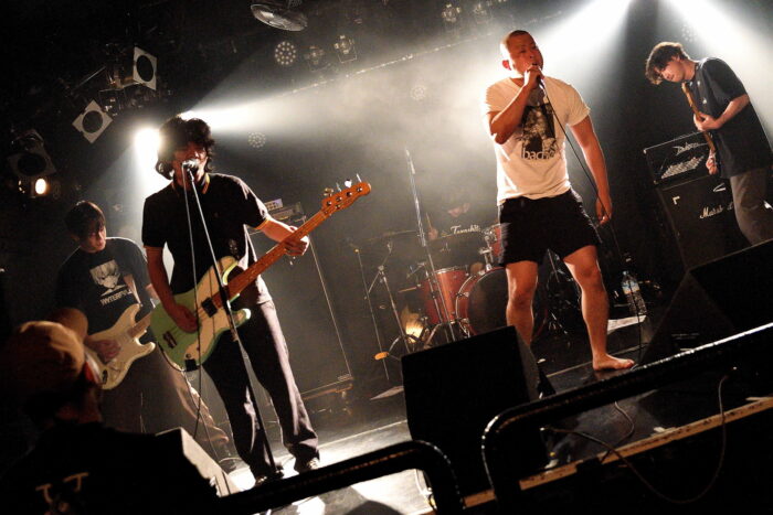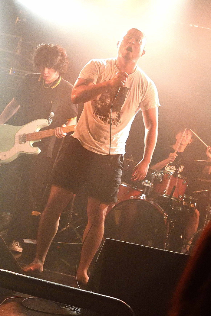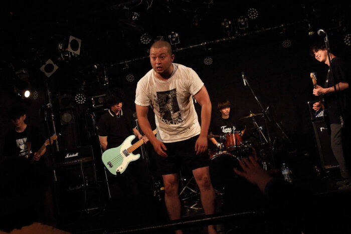 | (5)the back pain 静岡県磐田市のFMステージをホームに活動している五人組。日本語叙情系ハードコアバンド、として認知されているようですが、ワタシのような古いリスナーからすると、最新型ハードコアですねえ(苦笑)。日本語ポエトリーリーディングを効果的に挟み込んでのワイルドでダイナミック、だけど心優しいボーカルとバンドサウンド。ウーン素敵です。Vo,Gt,Gt,Ba,Drの五人編成。 |