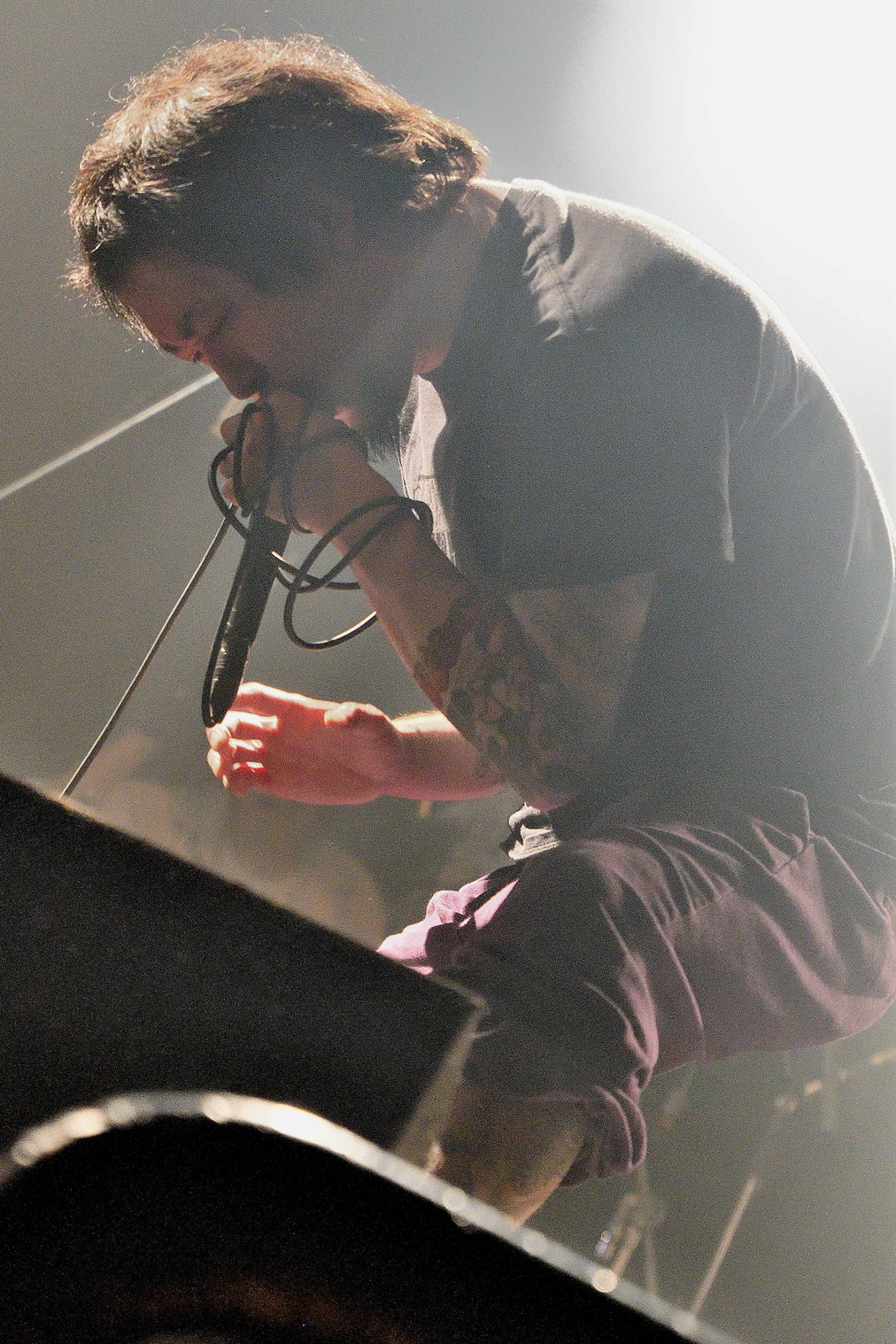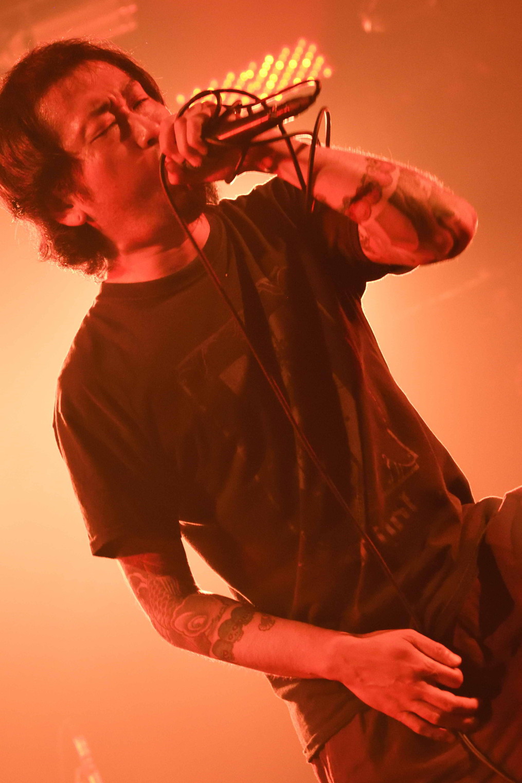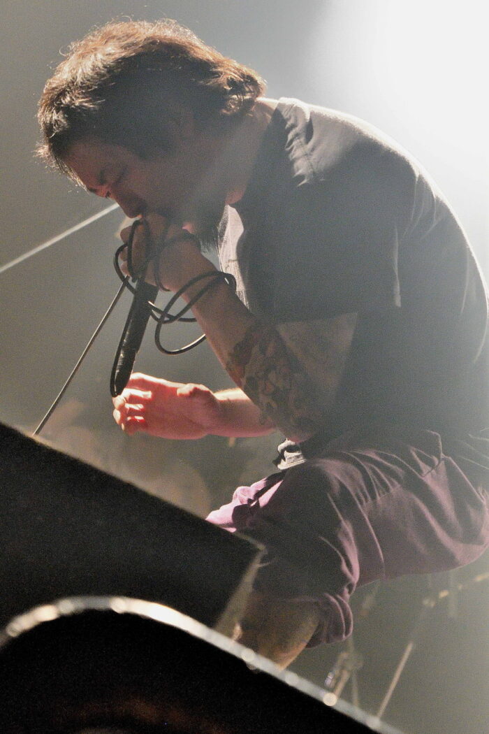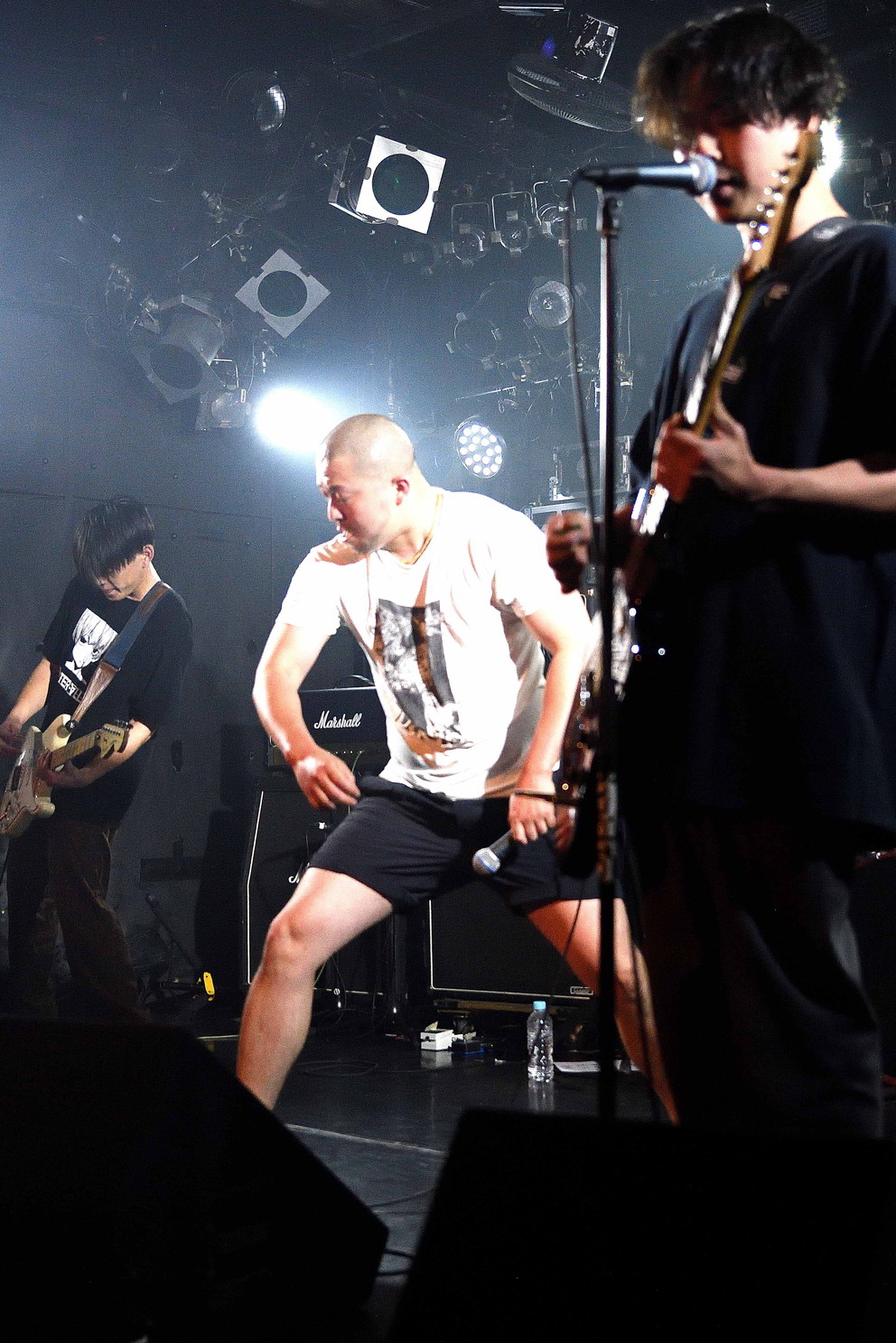 | (5)the back pain 静岡県磐田市のFMステージをホームに活動している五人組。日本語叙情系ハードコアバンド、として認知されているようですが、ワタシのような古いリスナーからすると、最新型ハードコアですねえ(苦笑)。日本語ポエトリーリーディングを効果的に挟み込んでのワイルドでダイナミック、だけど心優しいボーカルとバンドサウンド。ウーン素敵です。Vo,Gt,Gt,Ba,Drの五人編成。 |