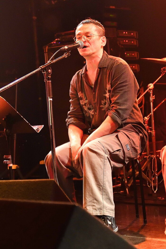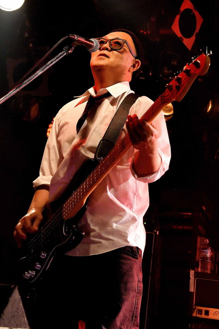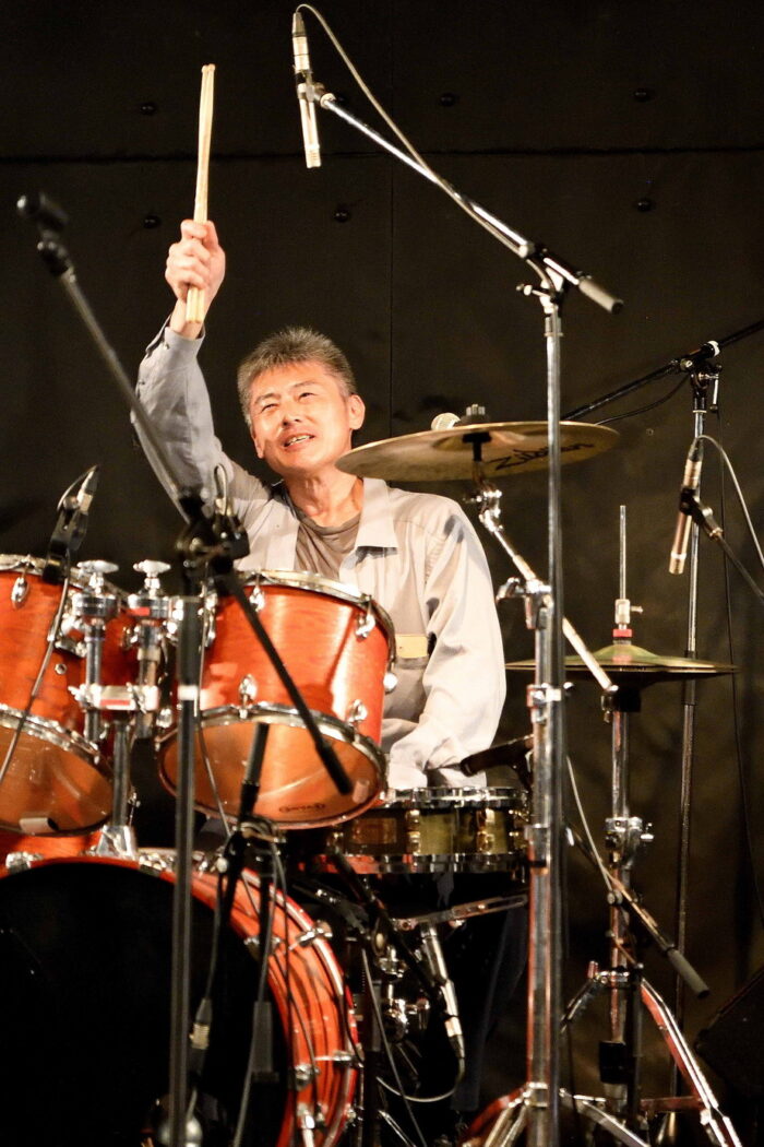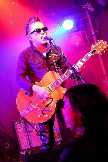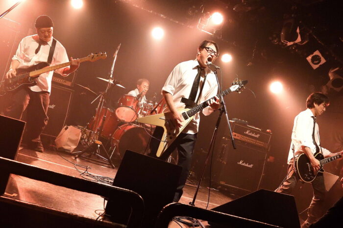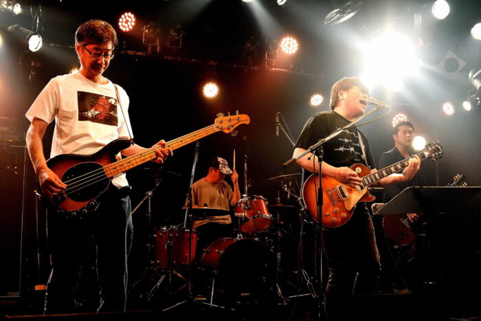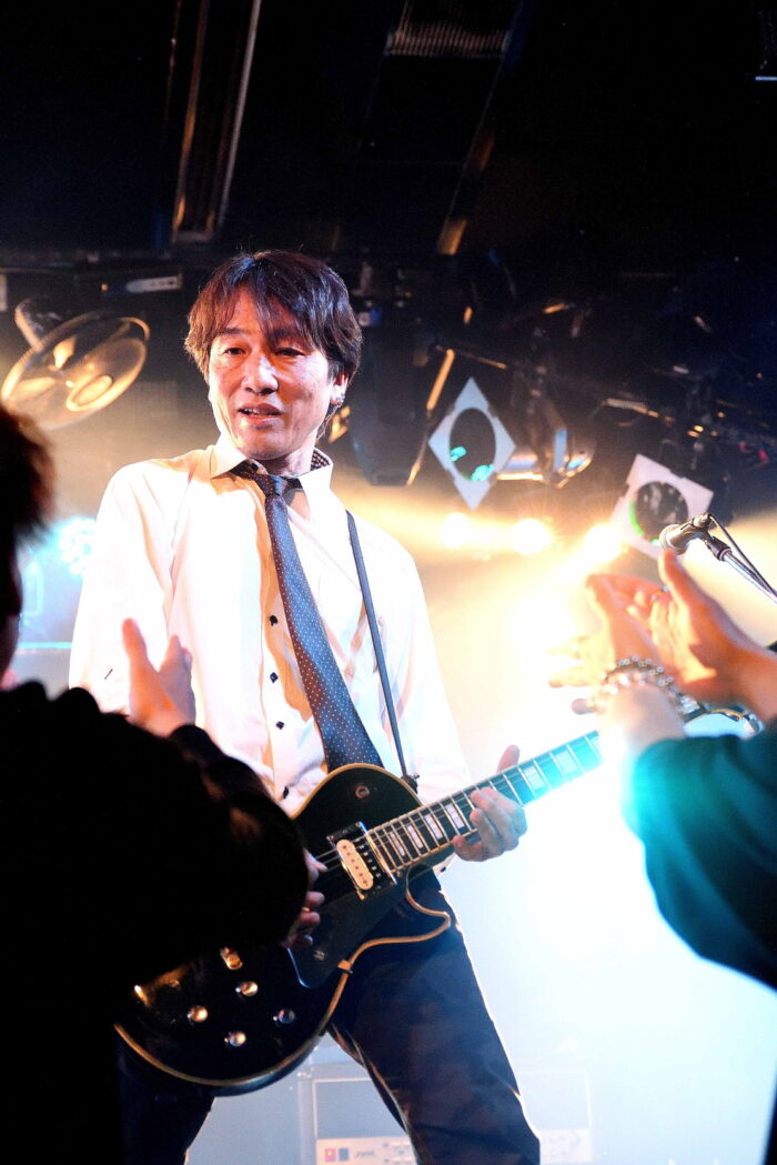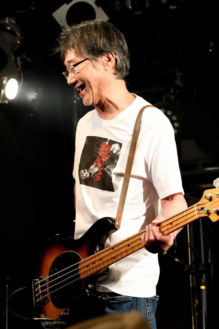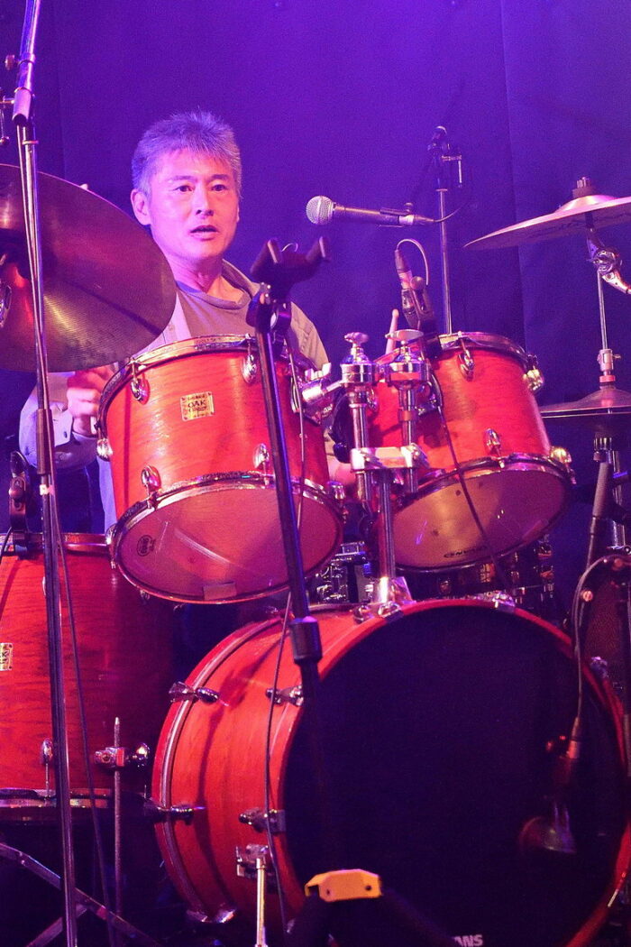 | (6)ゴールドブレンダーズ Vo(Gt),Ba,Drのトリオ編成。昭和な感じで楽しませてくれました。キャディラックのカバーから活動を開始したという事からもそのセンスが伺えるというものです。キャディラックの3曲のカバーを含め、懐かしい定番の曲をタップリと聞かせてくれました。ツッパリハイスクールロックンロール、ルイジアンナ、スニーカーブルース、ハイティーンブギ(ロカビリー調のアレンジが渋い)。 |