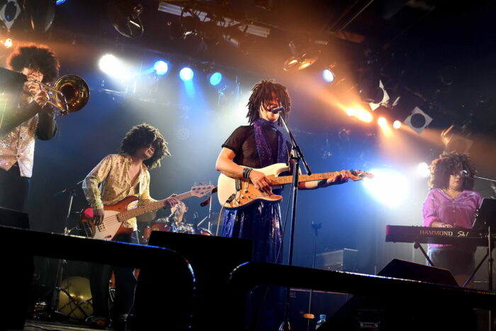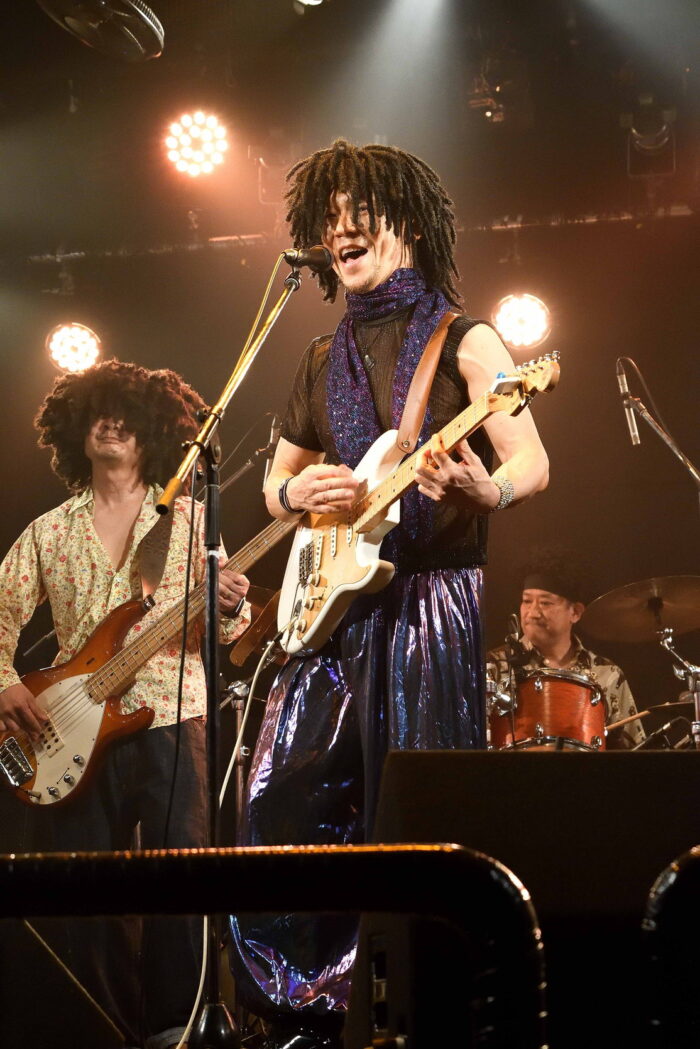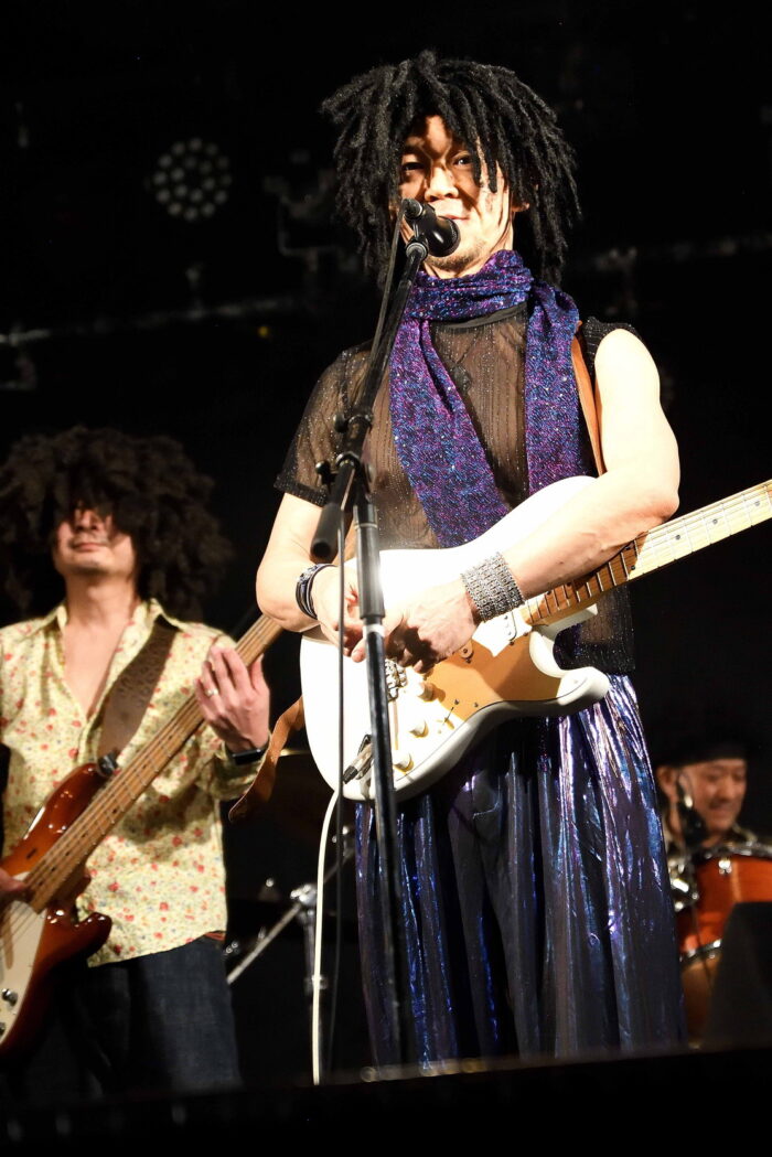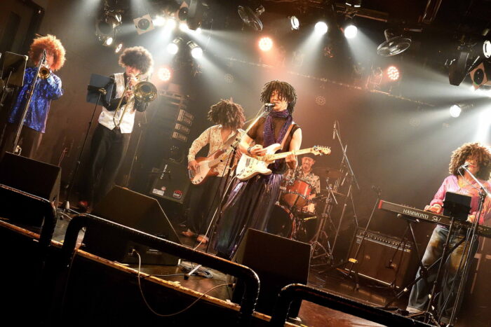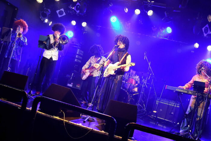 | (4)オリティアフロヘッズ Vo(Gt),Ba,Key,トランペット、トロンボーン、Drの六人編成。管楽器が2本というのは壮観ですね。謎のダンサーさんも登場して、最初っから最後まで飛ばしてくれます。虹~レインボーをテーマにした楽曲(いわゆる多様性への思いを込めているのかと想像します)など、テーマ性のある曲が多いのも、このバンドの魅力の一つですね。 |