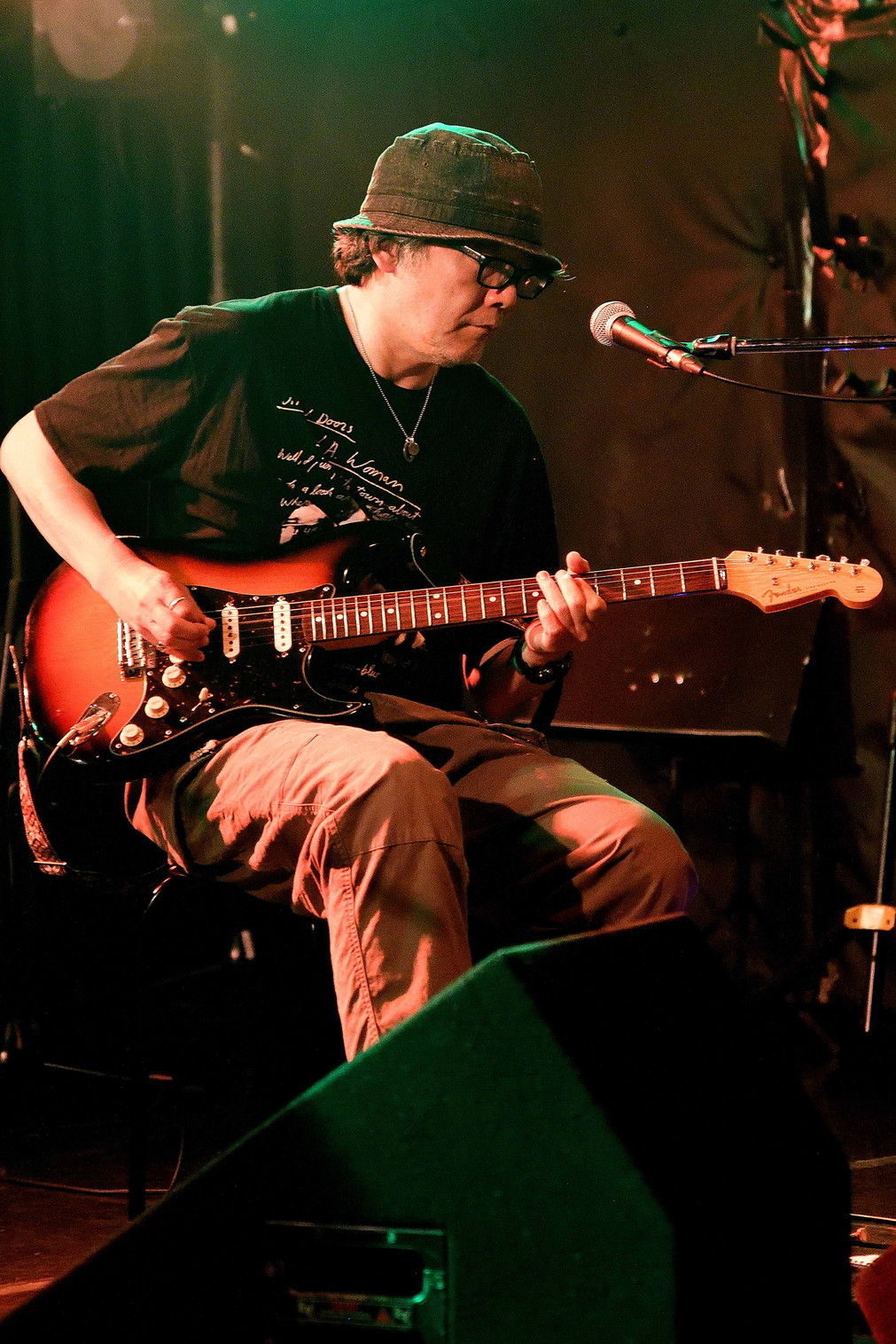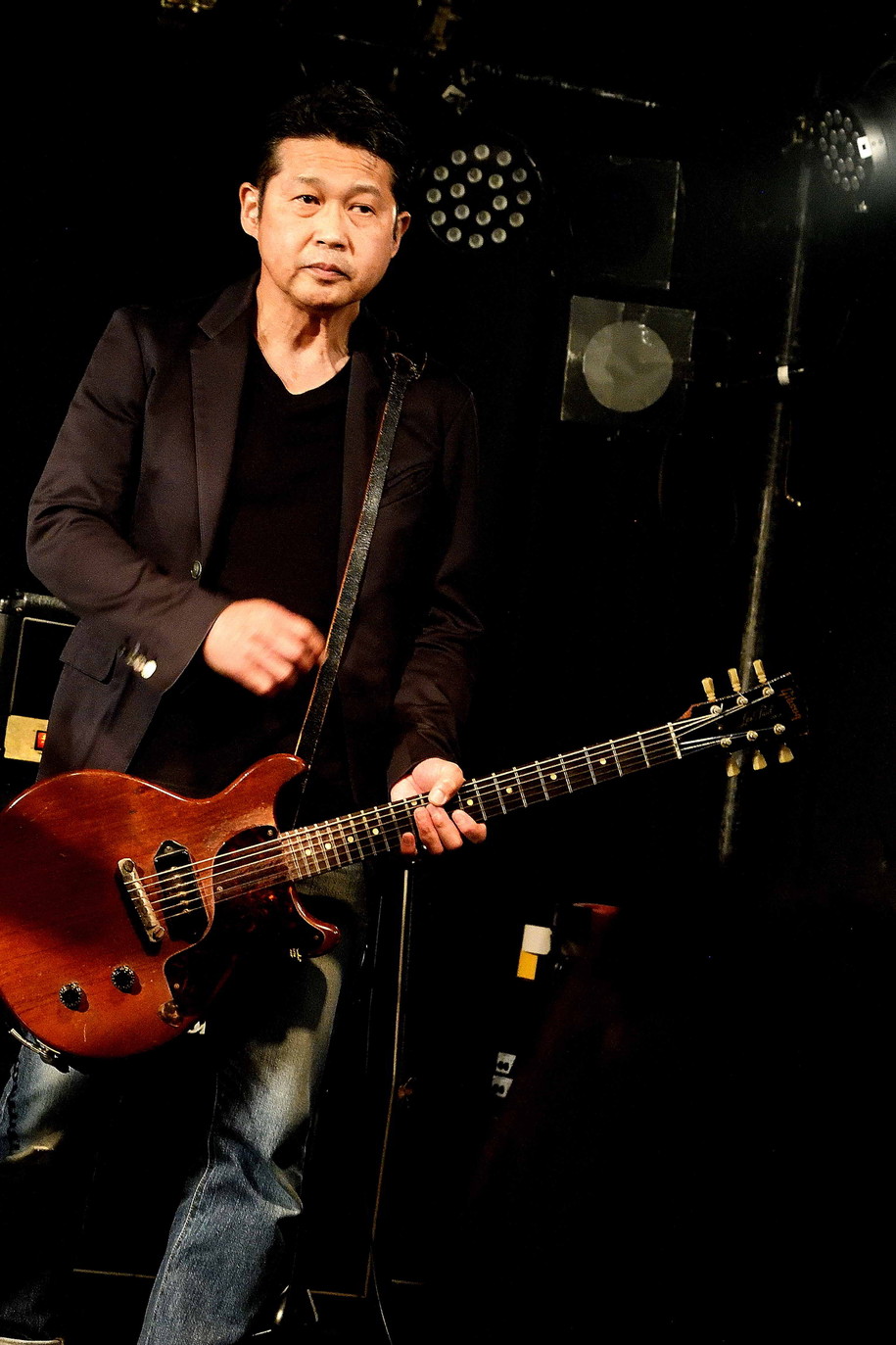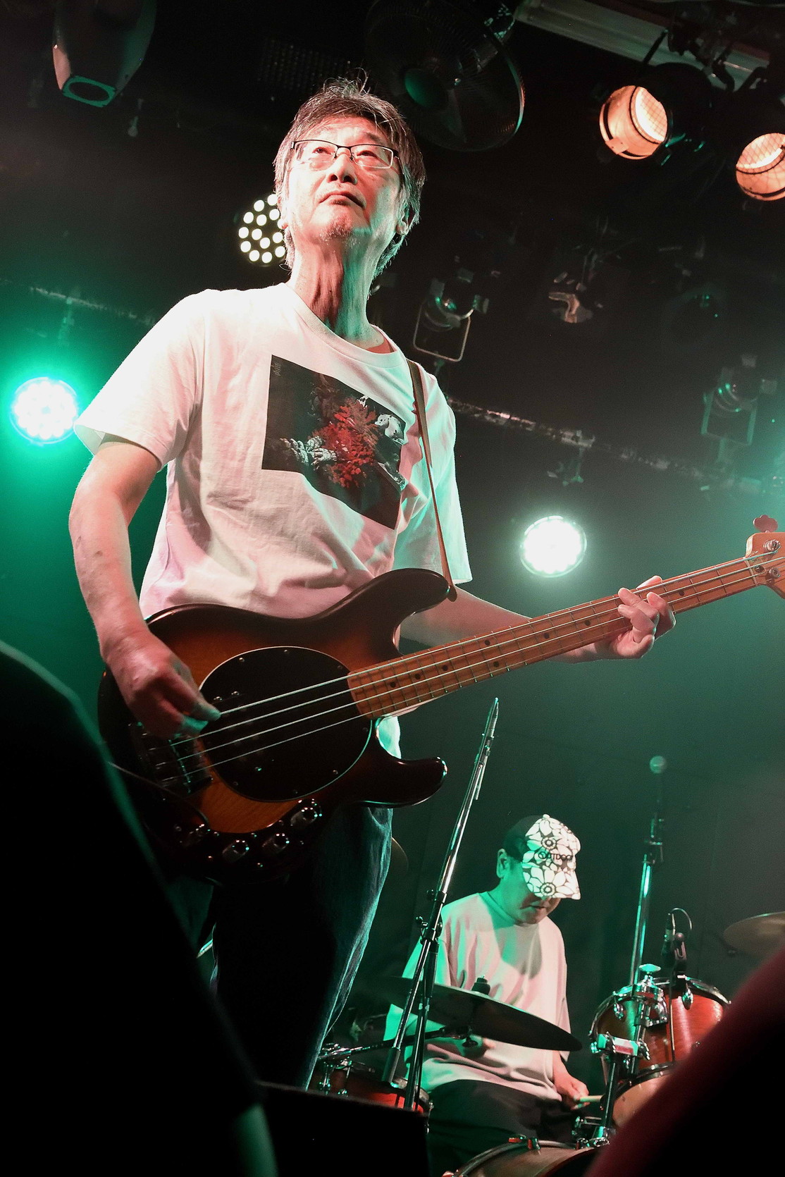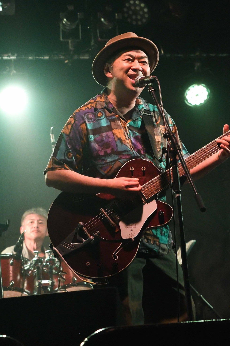 | (6)ゴールドブレンダーズ Vo(Gt),Ba,Drのトリオ編成。昭和な感じで楽しませてくれました。キャディラックのカバーから活動を開始したという事からもそのセンスが伺えるというものです。キャディラックの3曲のカバーを含め、懐かしい定番の曲をタップリと聞かせてくれました。ツッパリハイスクールロックンロール、ルイジアンナ、スニーカーブルース、ハイティーンブギ(ロカビリー調のアレンジが渋い)。 |