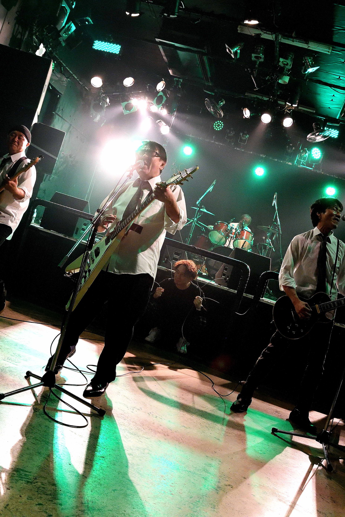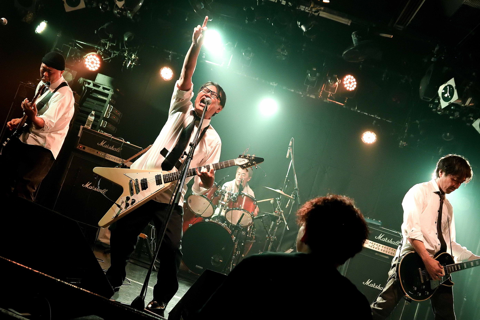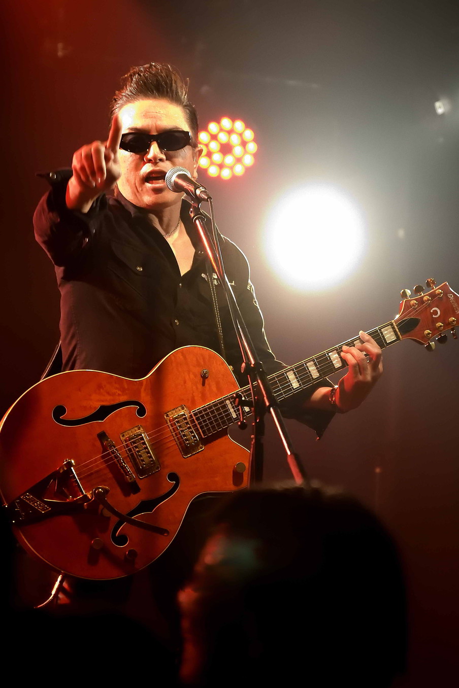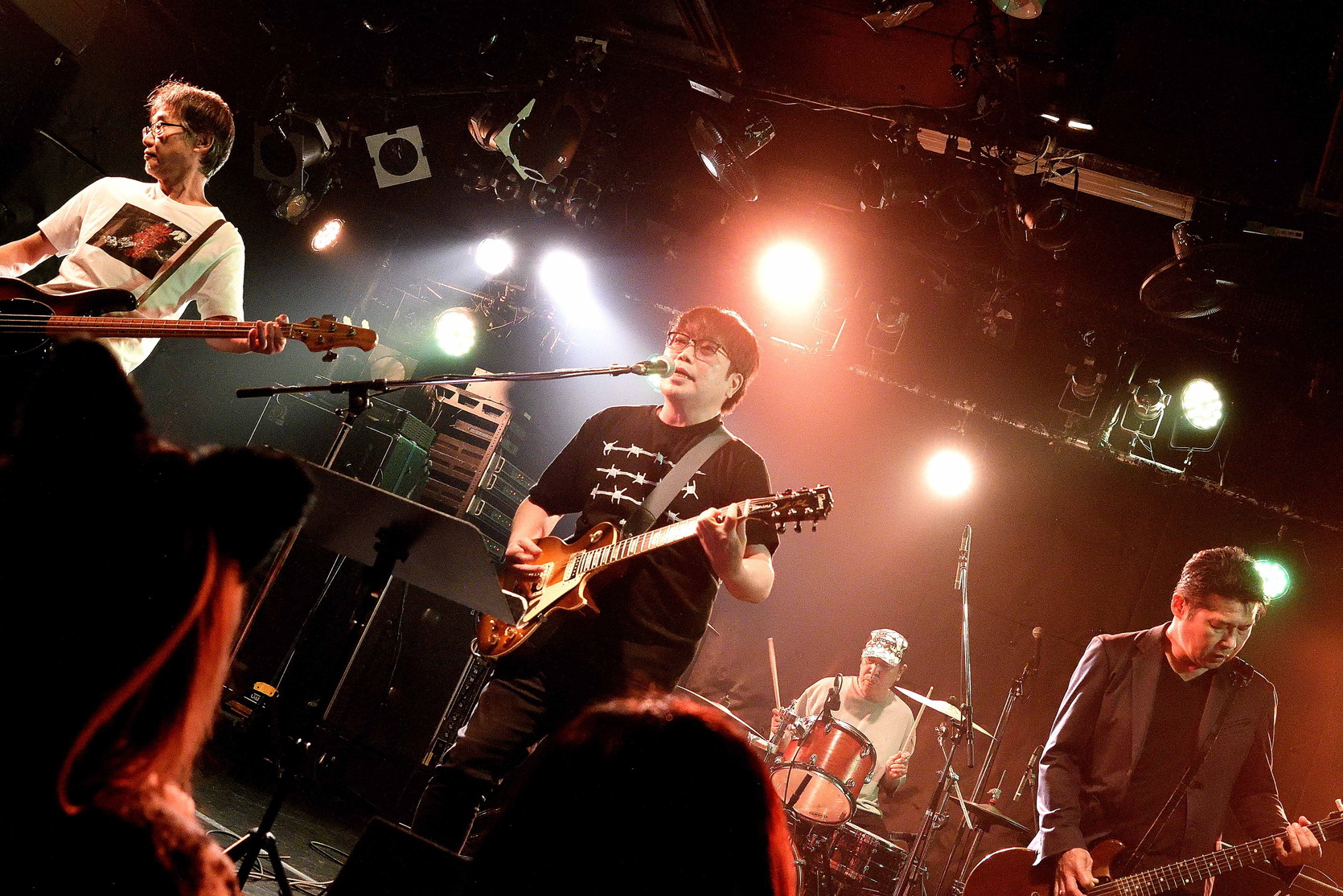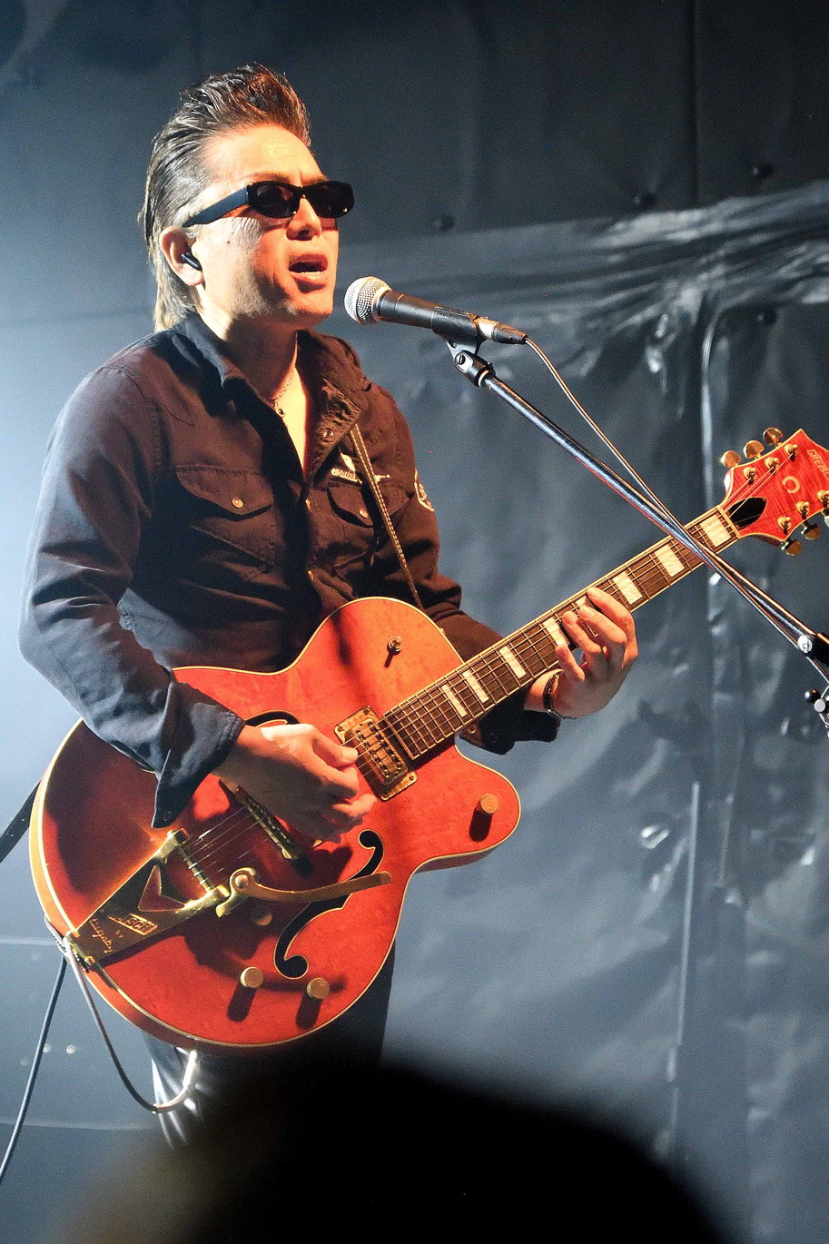 | (6)ゴールドブレンダーズ Vo(Gt),Ba,Drのトリオ編成。昭和な感じで楽しませてくれました。キャディラックのカバーから活動を開始したという事からもそのセンスが伺えるというものです。キャディラックの3曲のカバーを含め、懐かしい定番の曲をタップリと聞かせてくれました。ツッパリハイスクールロックンロール、ルイジアンナ、スニーカーブルース、ハイティーンブギ(ロカビリー調のアレンジが渋い)。 |