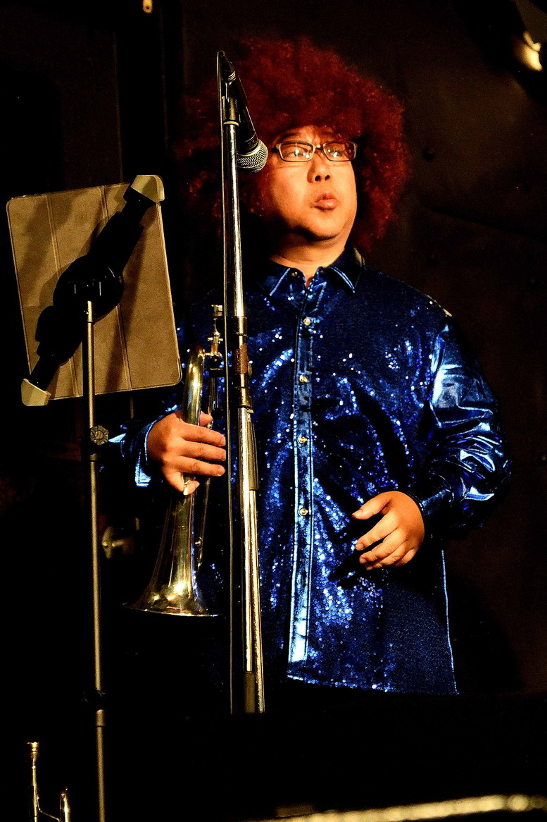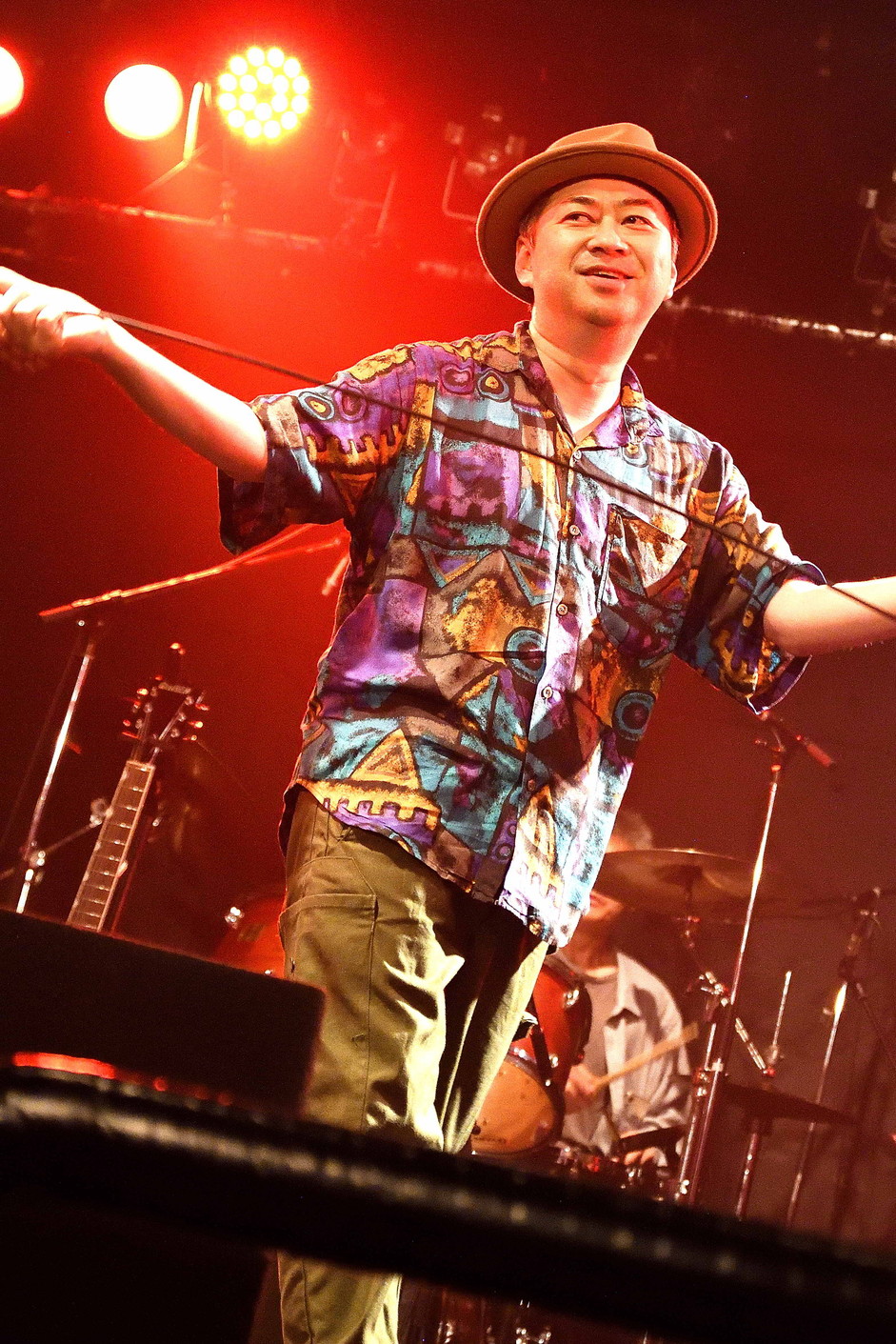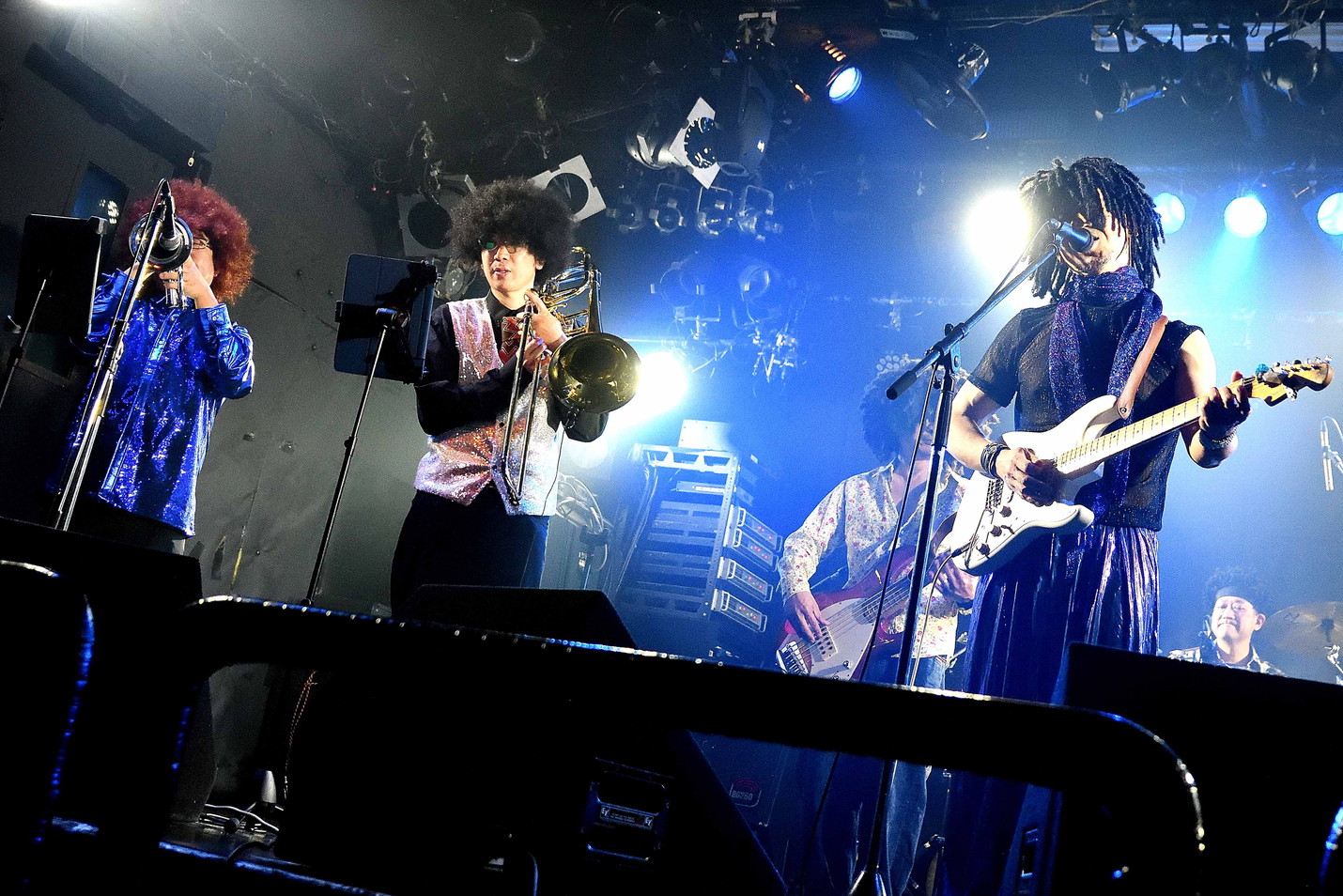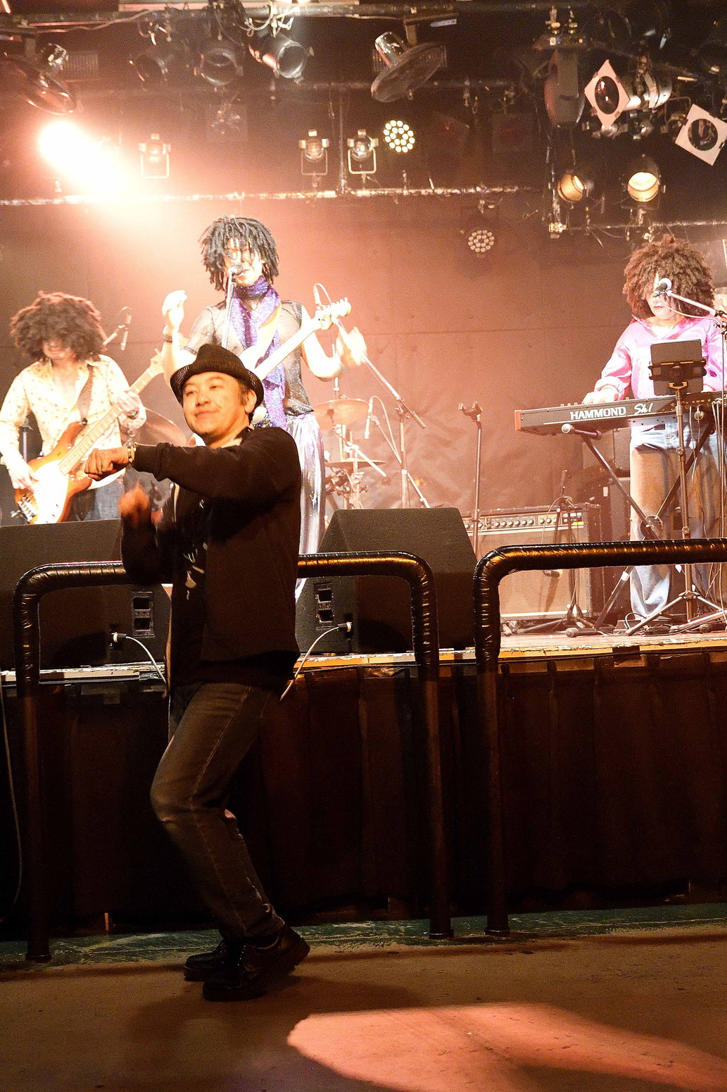 | (4)オリティアフロヘッズ Vo(Gt),Ba,Key,トランペット、トロンボーン、Drの六人編成。管楽器が2本というのは壮観ですね。謎のダンサーさんも登場して、最初っから最後まで飛ばしてくれます。虹~レインボーをテーマにした楽曲(いわゆる多様性への思いを込めているのかと想像します)など、テーマ性のある曲が多いのも、このバンドの魅力の一つですね。 |