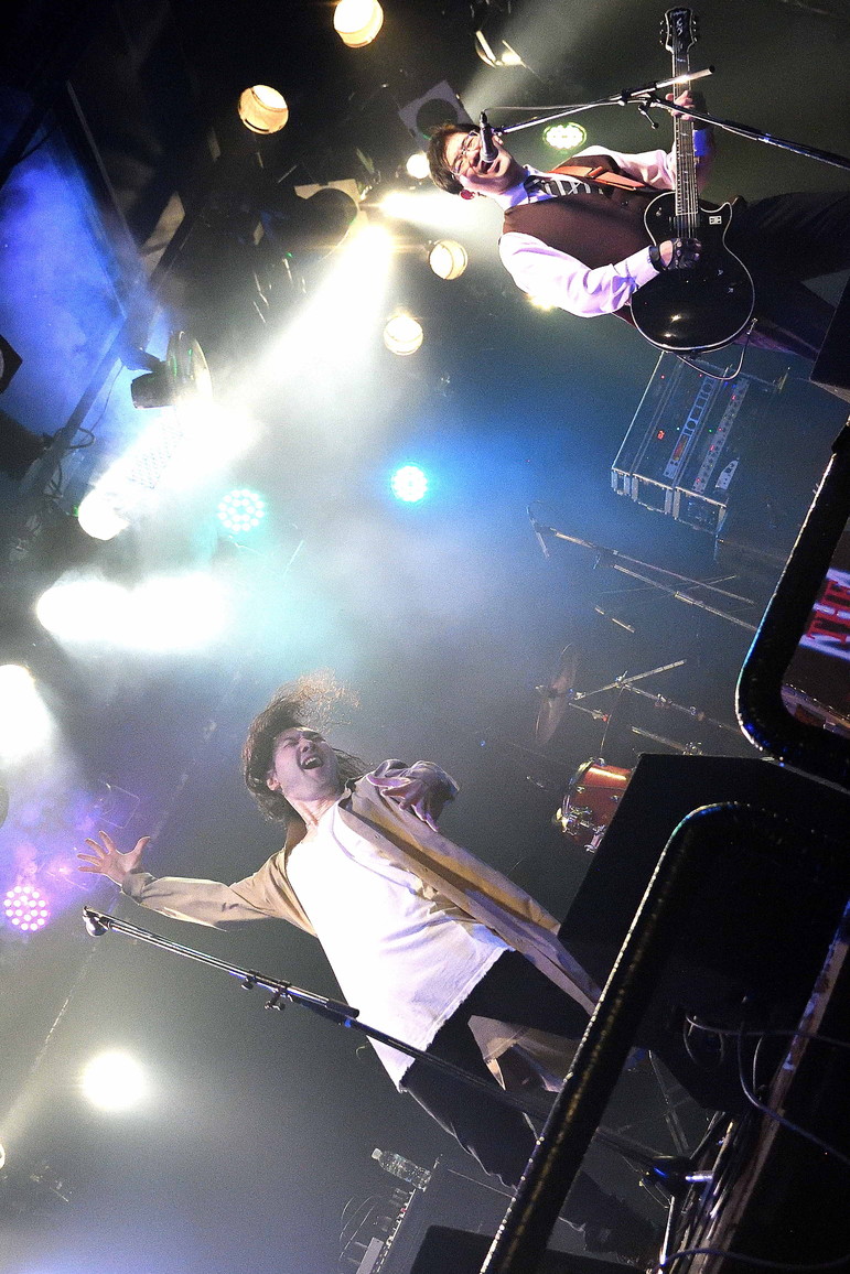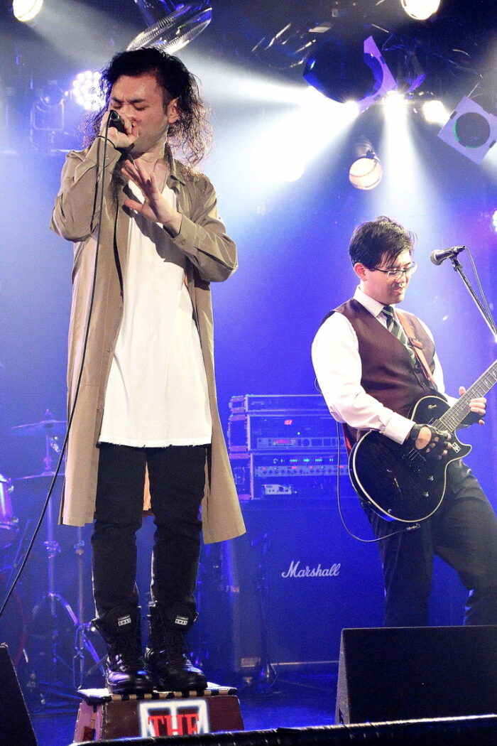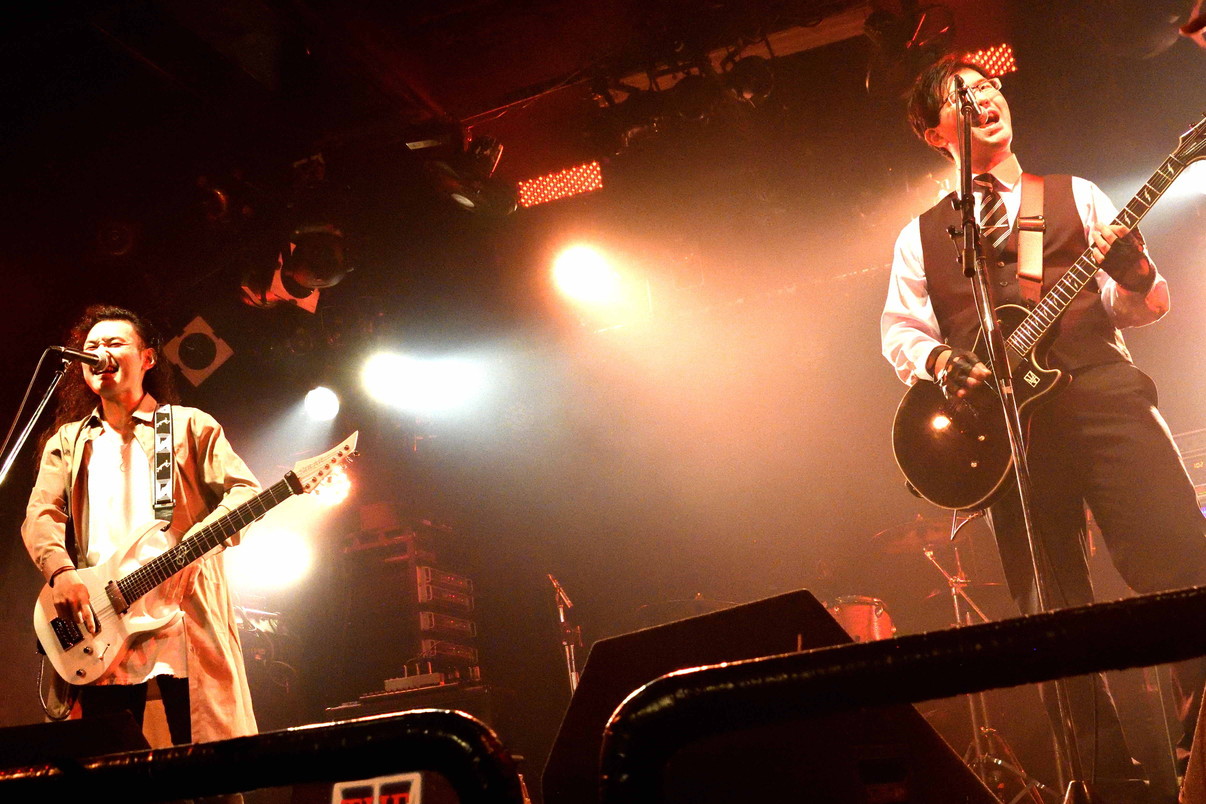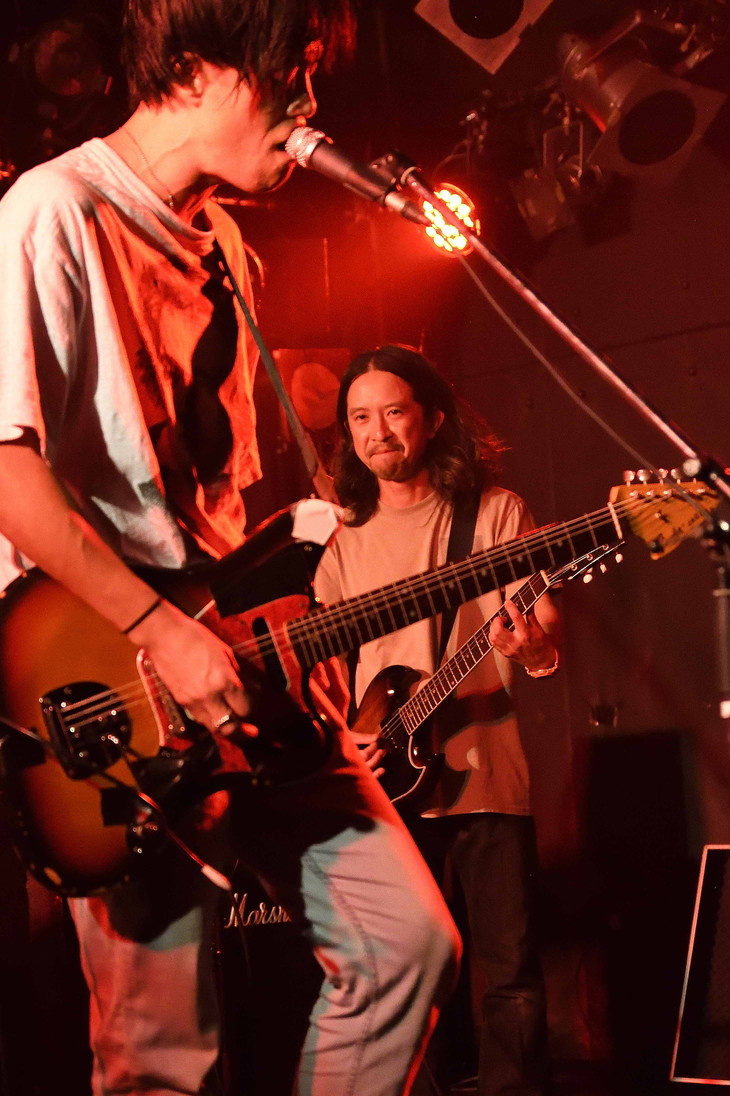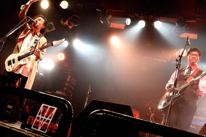 | (1)THE EVESCAPE ギタリスト二人によるデュオDuo 編成で(リズムなどはいわゆる打ち込み仕様)、何度も紹介させて頂いておりますが、Vo(Gt),Gt(Vo)と表記するのが好ましいかも?と思った次第(苦笑)。この兄弟ユニットによる、ポップでキャッチーな楽曲と演奏はいつ見ても(聴いても)楽しく、元気をもらえます。ギターを置いてボーカルに専念したラスト曲、カッコ良かったです。 |