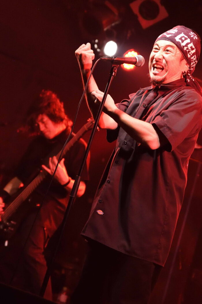 | (5)NAMAZ 久しぶりにNAMAZのライブを拝見することが出来ました。どのくらい久しぶりかというと、実に七年ぶり。前回見たときの記録は → Live No.253(2018.6.16) ←クリック。まあ、ワタシが把握していないだけで、他にライブが行われていた可能性はありますが。結成から25年超(オリジナルメンバーは一人も残っていない)、Death Metal、Heavy Metal のバンドとして、シーンに深く爪痕を残してきたバンドだけに、ワクワク感でイッパイでしたね。