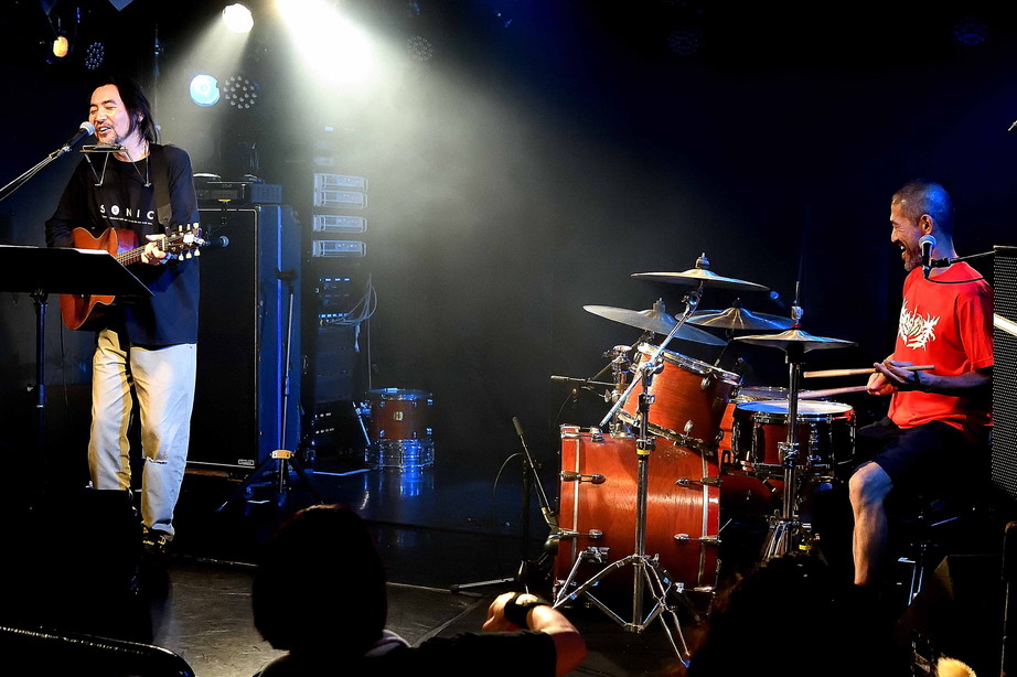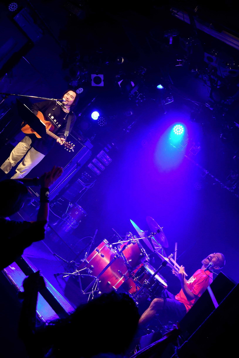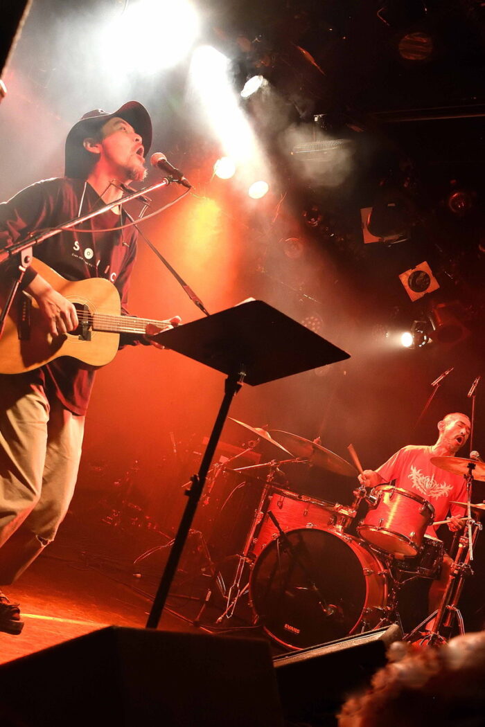 今さら説明不明の ミカタケイゾウ と くにお の渋い40代コンビ。(アラフィフ/around fifty という言い方も、そんなに間違っていないかも(苦笑)。ドラマーのくにおさんは、実はNAMAZのオリジナルメンバーであった(NAMAZの結成は1998年)、という事実は実に重い・・・・かもしれない(苦笑)。この日のライブの最後を飾る素晴らしいライブであるのは言わずもがな。 いい言葉なんていらない・・・態度で示しましょうよ、が背景に見え隠れする歌だったんだあ、と気づきましたね(制作者の意図とは違うかなあ?) |