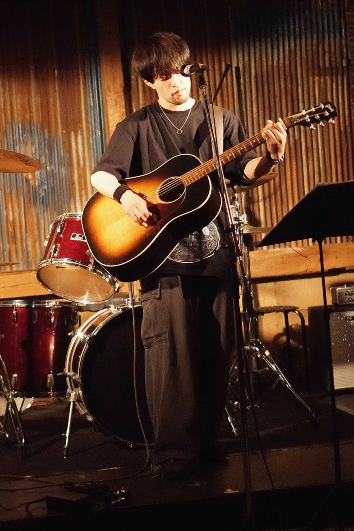 | (2)りょうすけ 何度かライブを拝見しておりますが、見るたびに良くなっていますね(上から目線?でゴメンナサイですが)。時間を掛けて音楽と、そして自分自身と向き合っている、そんな印象のライブでした。ワタシは昭和世代ですが(バリバリの?)、令和も7年を数える今、この実直なライブスタイルは頼もしい限りです。ギターアレンジにも工夫が伺えますね(重ね重ね、上から目線?で恐縮です)。 |