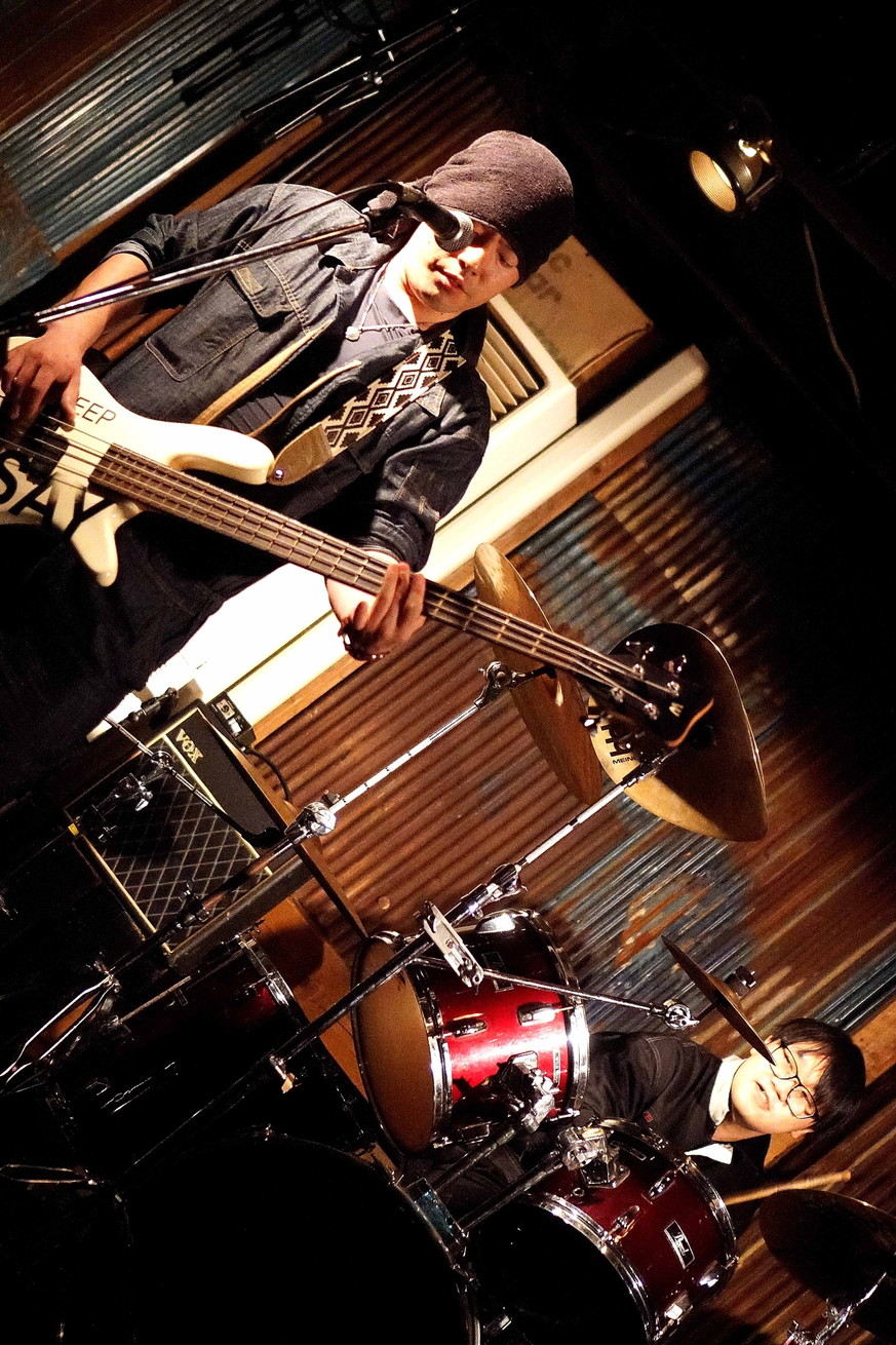 | (1)The Poppo Vo(Ba),Drの二人組。ギター無しの編成ですが、これは、ギタリストさんが脱退してしまったためのようでした。歌がイイ、あつい、気持ちが入っている、ですね。歌う姿より二十代半ばくらいとお見受けしたのですが、まさかの三十代でしたね。アタシがイイ歳だから、そう見える? 次に拝見する時は、ギタリストさんが居る状態で見たいですね。 |
