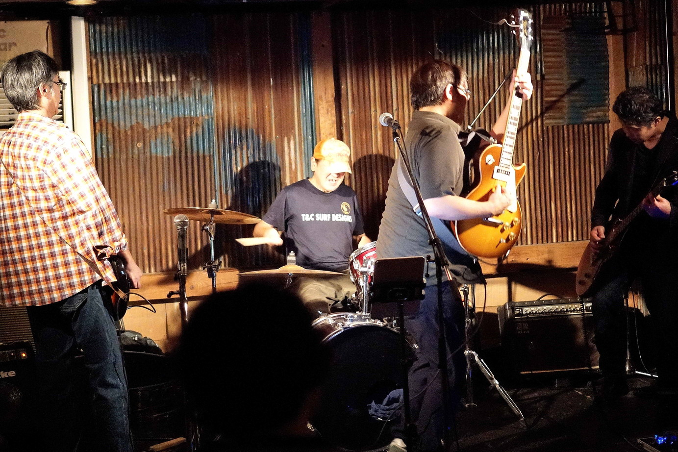 | (4)JUICE&LOVE ここバロウズで、彼らのライブを見るのは初。小さいハコで見るロックバンドもいいモノです、というか、アングラ文化の側面を持つロックには、こういう小さいハコこそが似合うのかもしれませんが。年に数回しかライブをヤラナイなんて・・・もったいない、と思わずにはいられないですね。 |