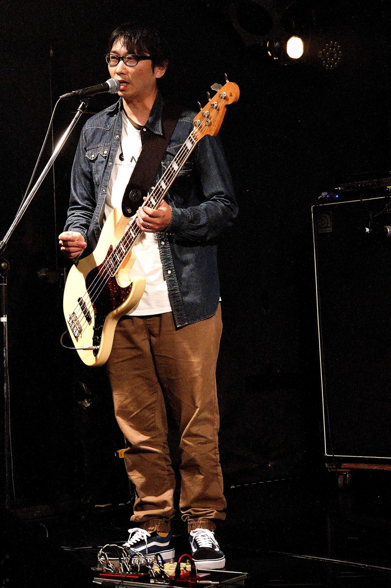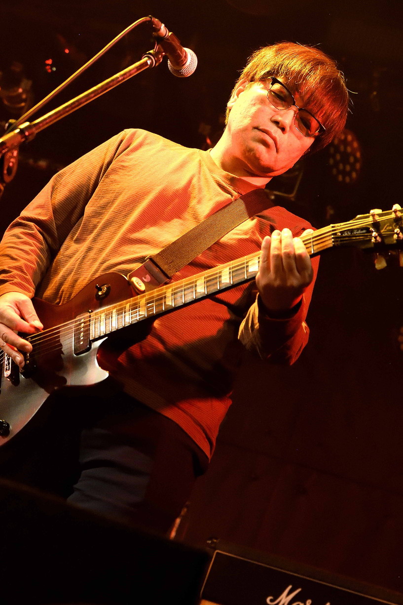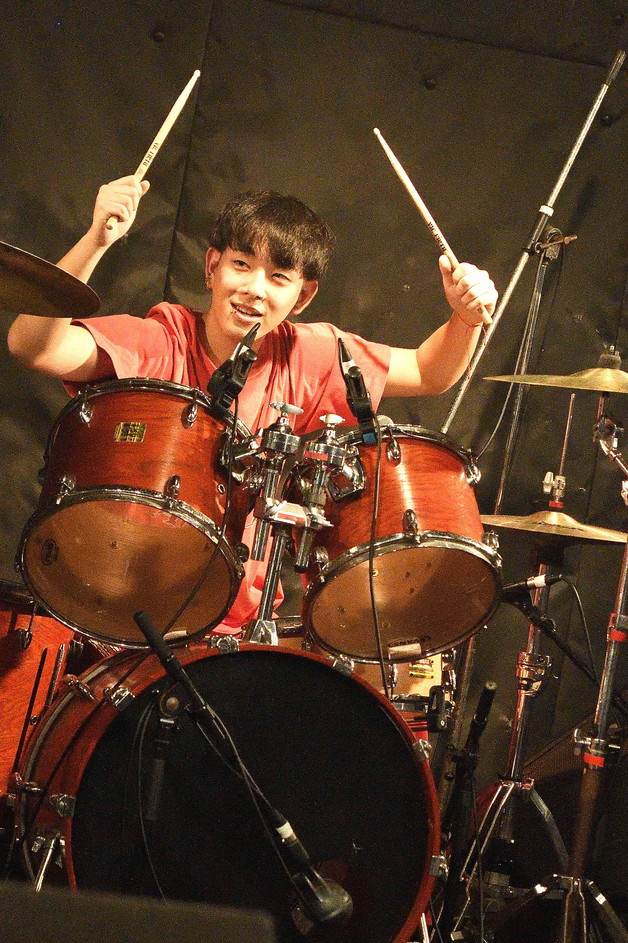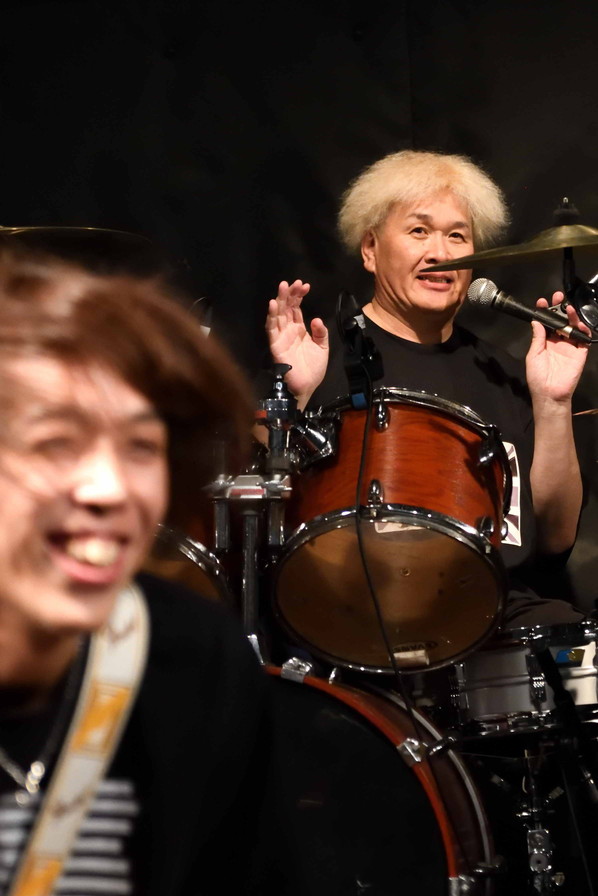 | (1)A-DEY Vo(Gt),Gt,Ba,Drの四人編成ADEYですが、この日のライブは、ドラマーをヘルプで務めるのが、シリーズ企画A-Rockのアツシさんであることにちなみ、『A・DEY』とクレジット」。ちなみにアツシさんのドラム歴は40年というのですから恐れ入ります。定番のADEYの曲3曲に加え、G-GATTの『JUST LIFE』が聴けました。 |