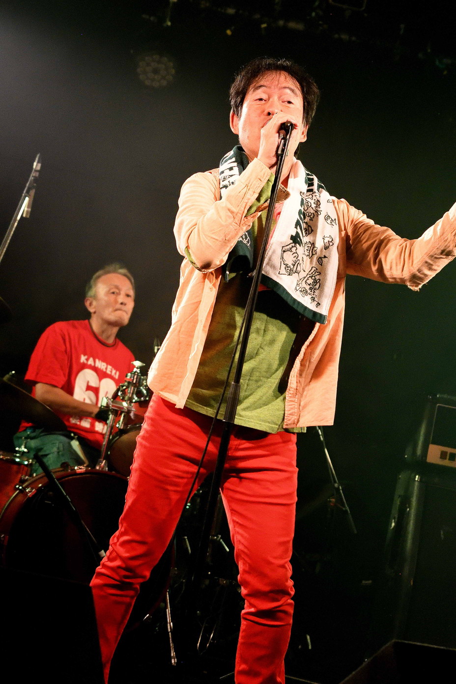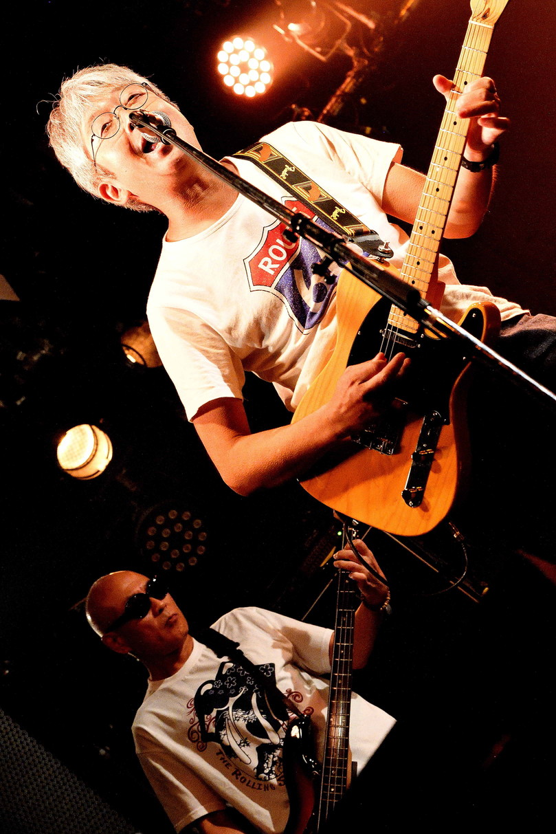 | (2)The Stone Rollers Vo,Gt,Gt,Ba,Drの五人編成で、ローリングストーンズのカバーバンド。【The Rolling Stones、イギリスのロックバンド、結成1962年】 メンバー全員、アラカン(アラ還)「60歳前後」との事ですが、カバー対象のバンド自体、60年以上前に結成で今も現役。アコースティックDuo(バンド)の平凡ズの御二方が、それぞれギターリストとして参加しているのも興味深いところではあります(苦笑)。ボーカル【ミック・高木】の、限りなくホンモノに近いキレッキレな歌とダンスは必見ですね(腰痛持ちのようで幾分キツイ部分もあるようですが)。ストーンズのカバーバンドは中々見る機会ないですから、毎回楽しみですね。 |
