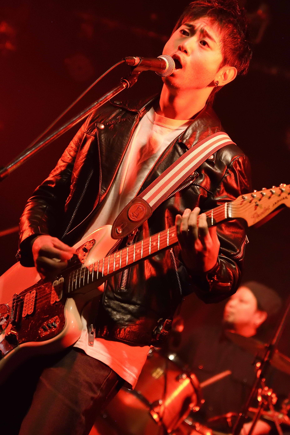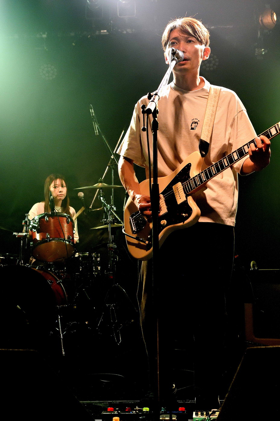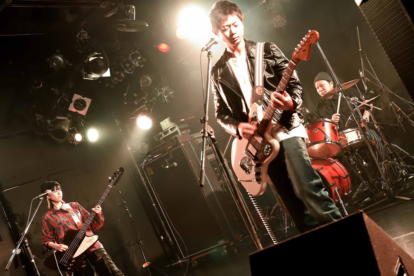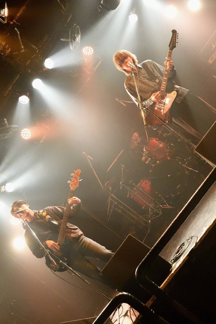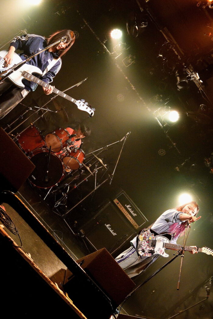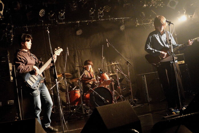 | (3)PEI Vo(Gt),Ba,Drのトリオ編成。何度かライブを拝見していますが、楽曲のタイプというかバリエーションというか曲調の多様さ幅広さには、毎度驚かされますね。オルタナティブ・ロック、ギターロックとざっくりと分類されるのでしょうが、マニア度高いなあ・・・と個人的には感じ入っております。メンバー三人三様のファッションセンスも、このバンドの魅力ですね。 |
