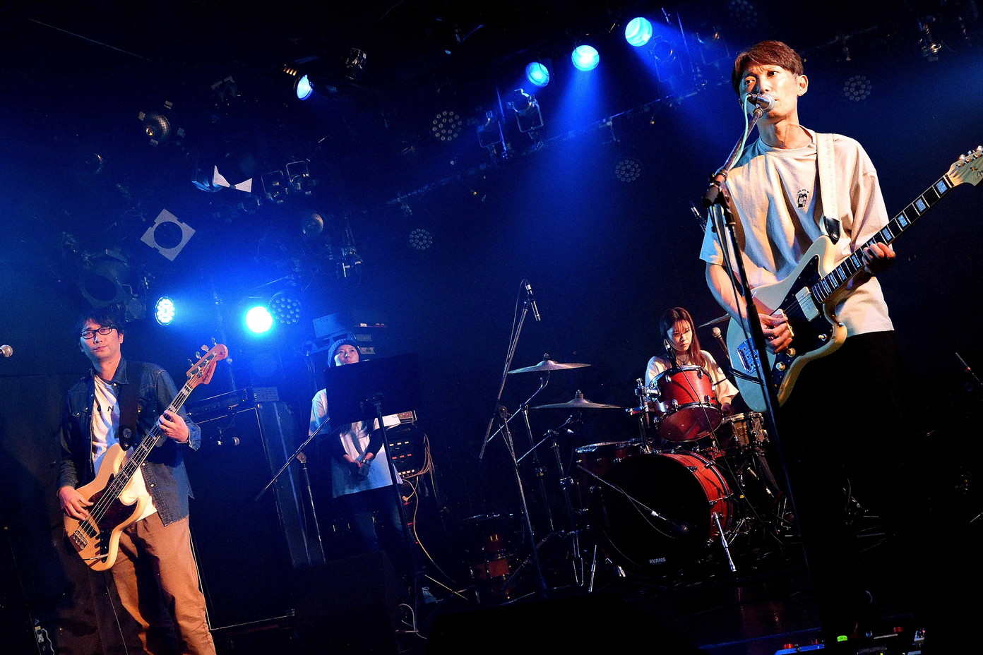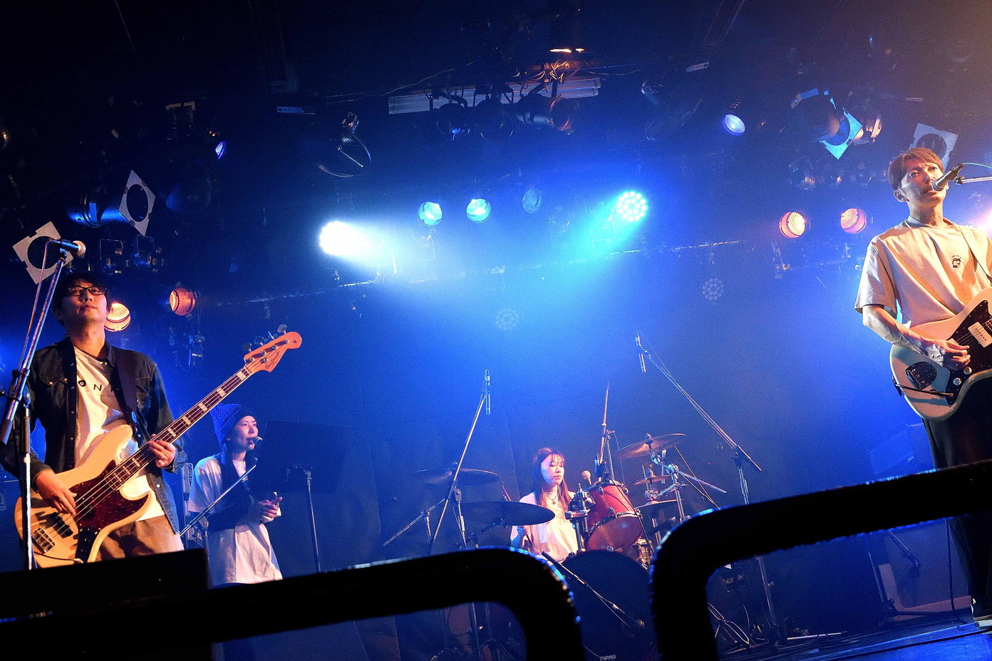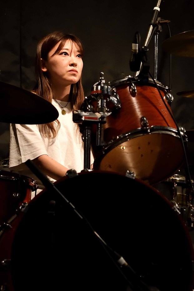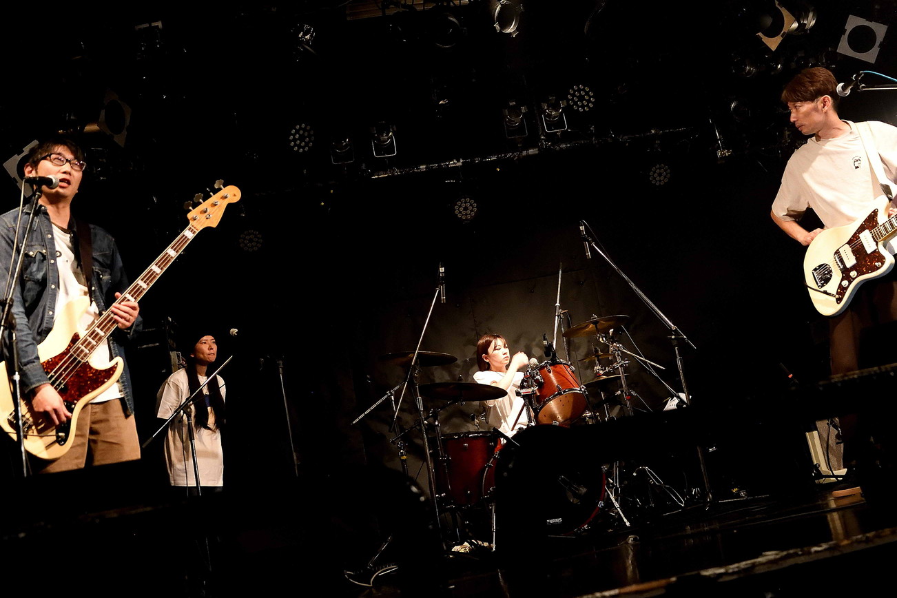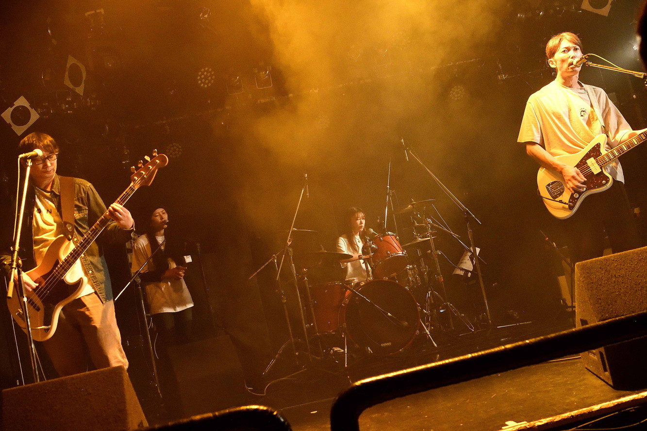 | (6)Bottom TurN 彼らのライブを見るのは、2024年8月以来と1年3ケ月ぶり。Vo(Gt),Ba,Drに女性コーラスを加えての四人編成が、直近の編成という理解でしたが、ドラマーが女性という男女半々の編成でのライブでした。ジェンダーで物事を解釈するのは決してホメラレタ事では無いのかもしれませんが、このバンドが持つ繊細さと優しさがより一層際立ったように感じました。オリジナルメンバーはVo(Gt)のヒデオさんのみですが、約20年の歴史を持つバンドだけに安定感はバツグンぐんですね。引き続き今後の動向に注視、ですね。 |