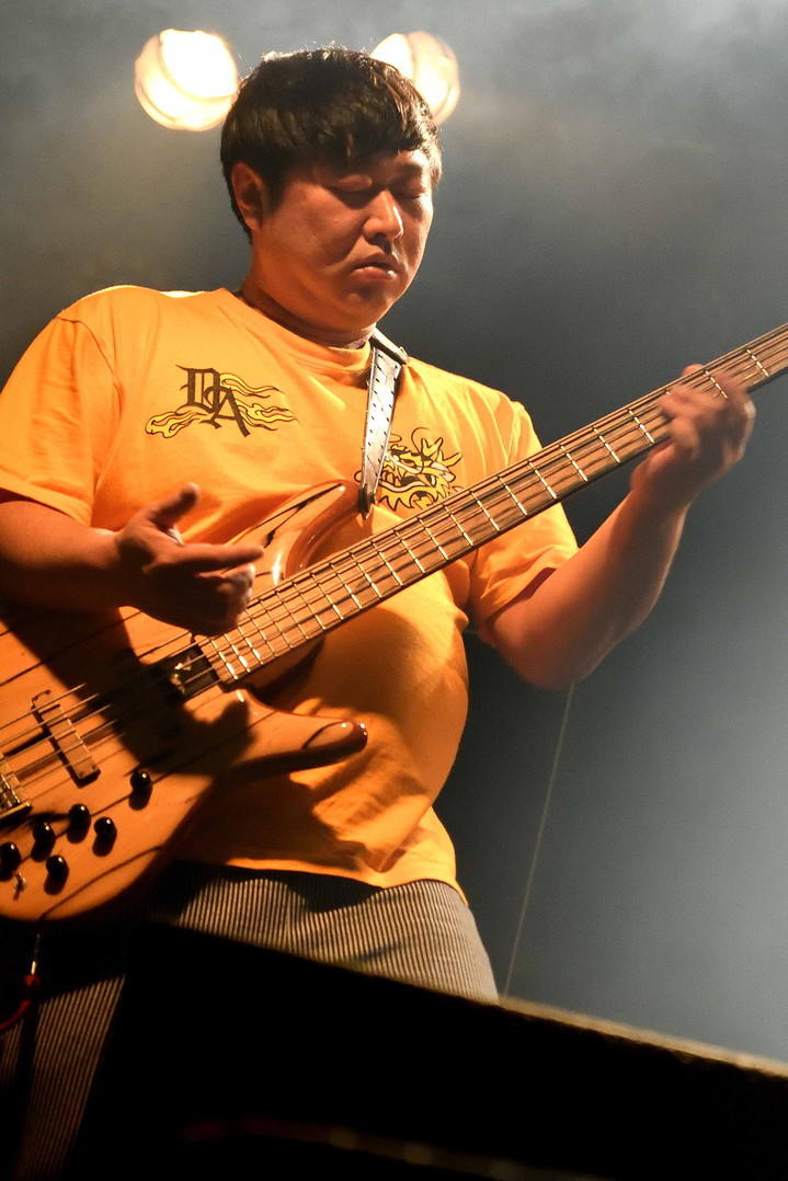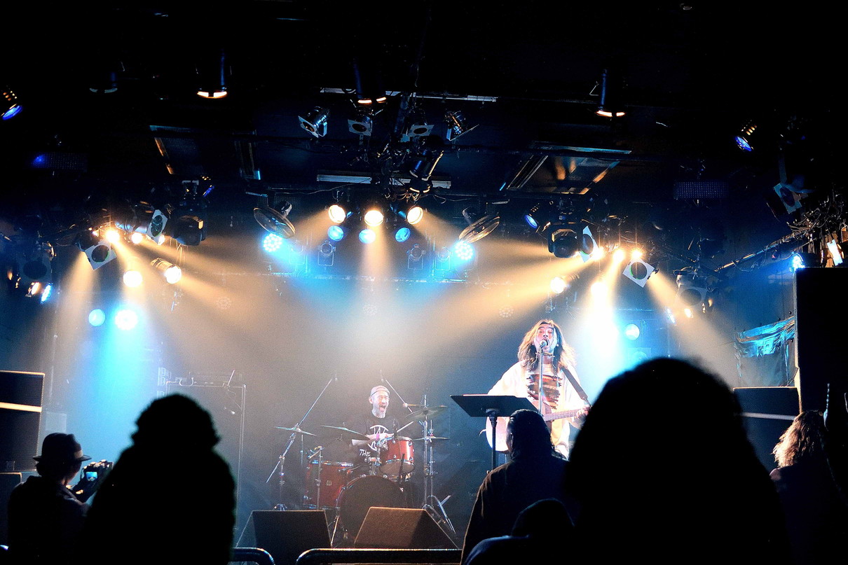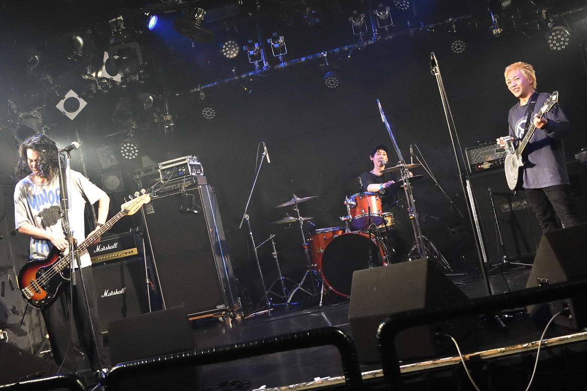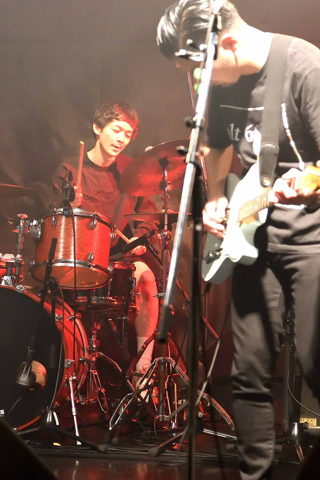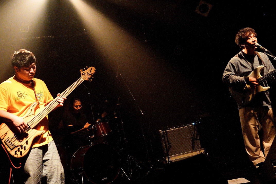| (2)any Gt(Vo),Ba,Dr のトリオ編成any。結構長い事、不動の三人ですね。当初は出演が予定されていませんでしたが、出演キャンセルがあり急遽出演となった模様です。こういう渋いロックバンドが、しぶとく?地道?に活動しているのですよ・・・と声を大にして言いたい(誰にむかって・・苦笑)。メンバー三人の技量の高さが伺えますね。 |