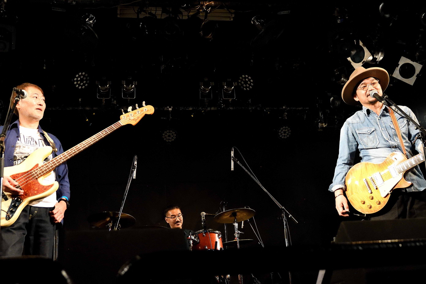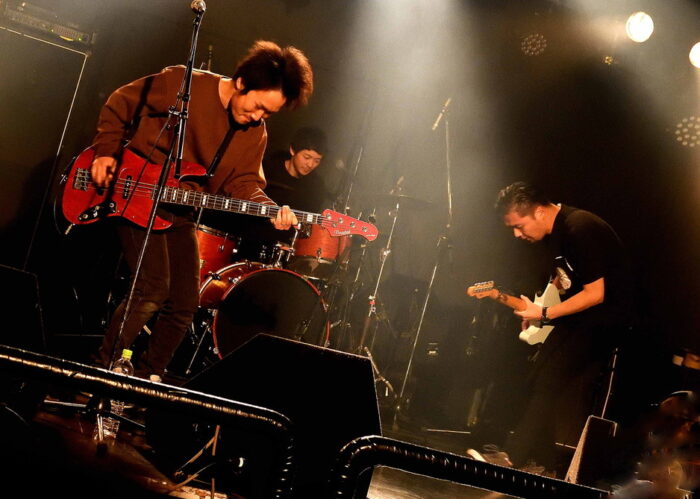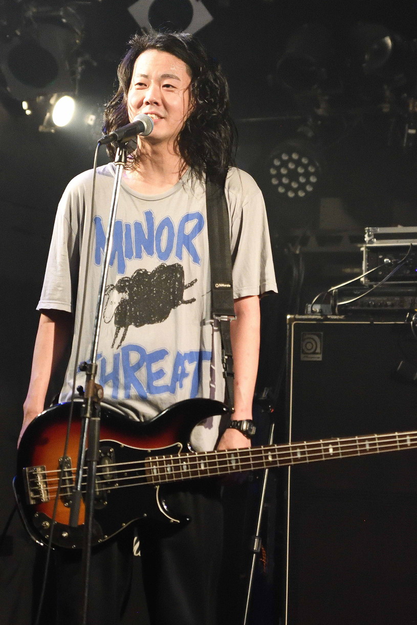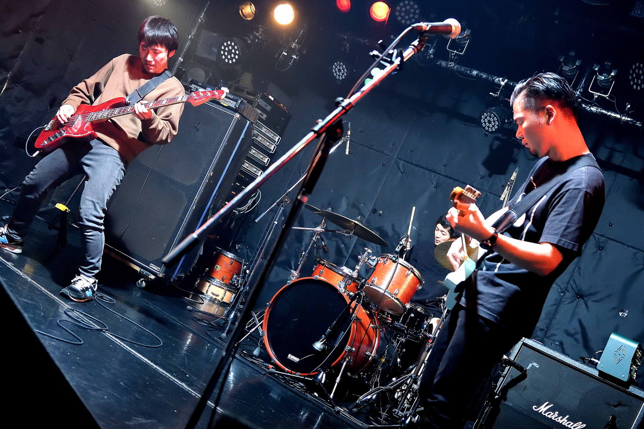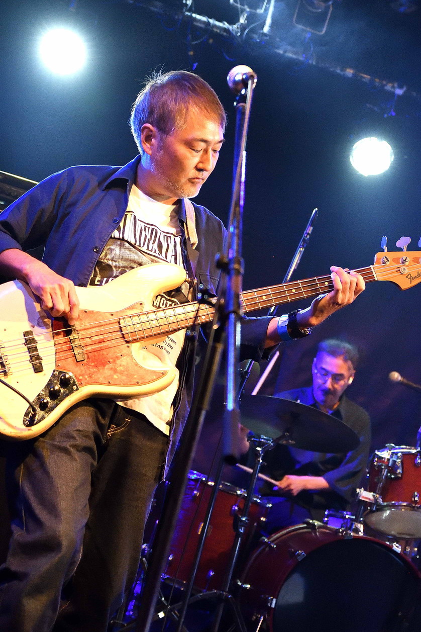 | (2)any Gt(Vo),Ba,Dr のトリオ編成any。結構長い事、不動の三人ですね。当初は出演が予定されていませんでしたが、出演キャンセルがあり急遽出演となった模様です。こういう渋いロックバンドが、しぶとく?地道?に活動しているのですよ・・・と声を大にして言いたい(誰にむかって・・苦笑)。メンバー三人の技量の高さが伺えますね。 |