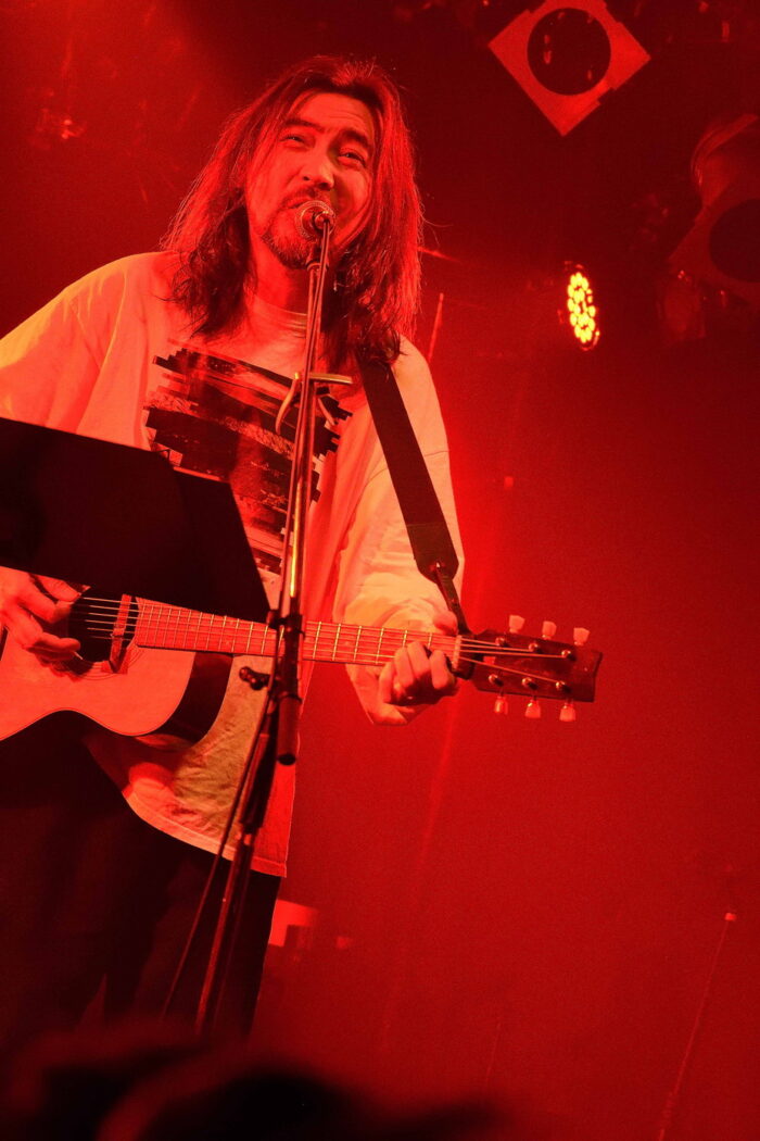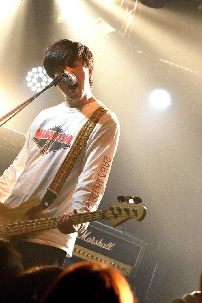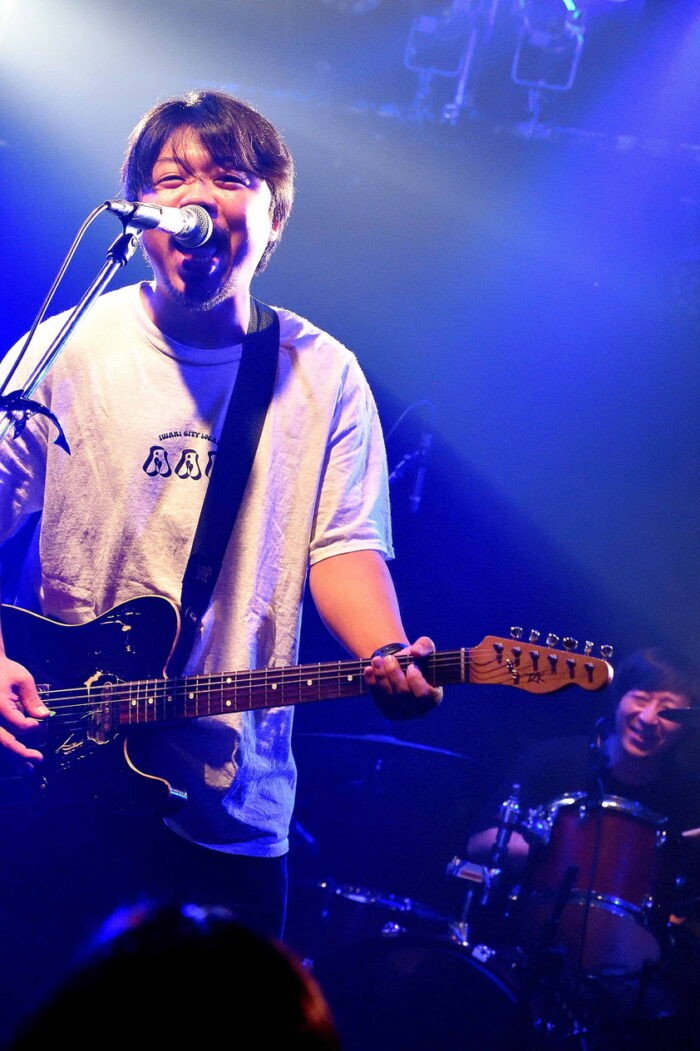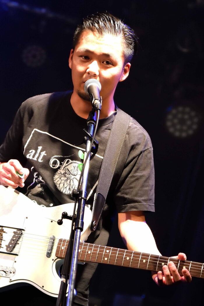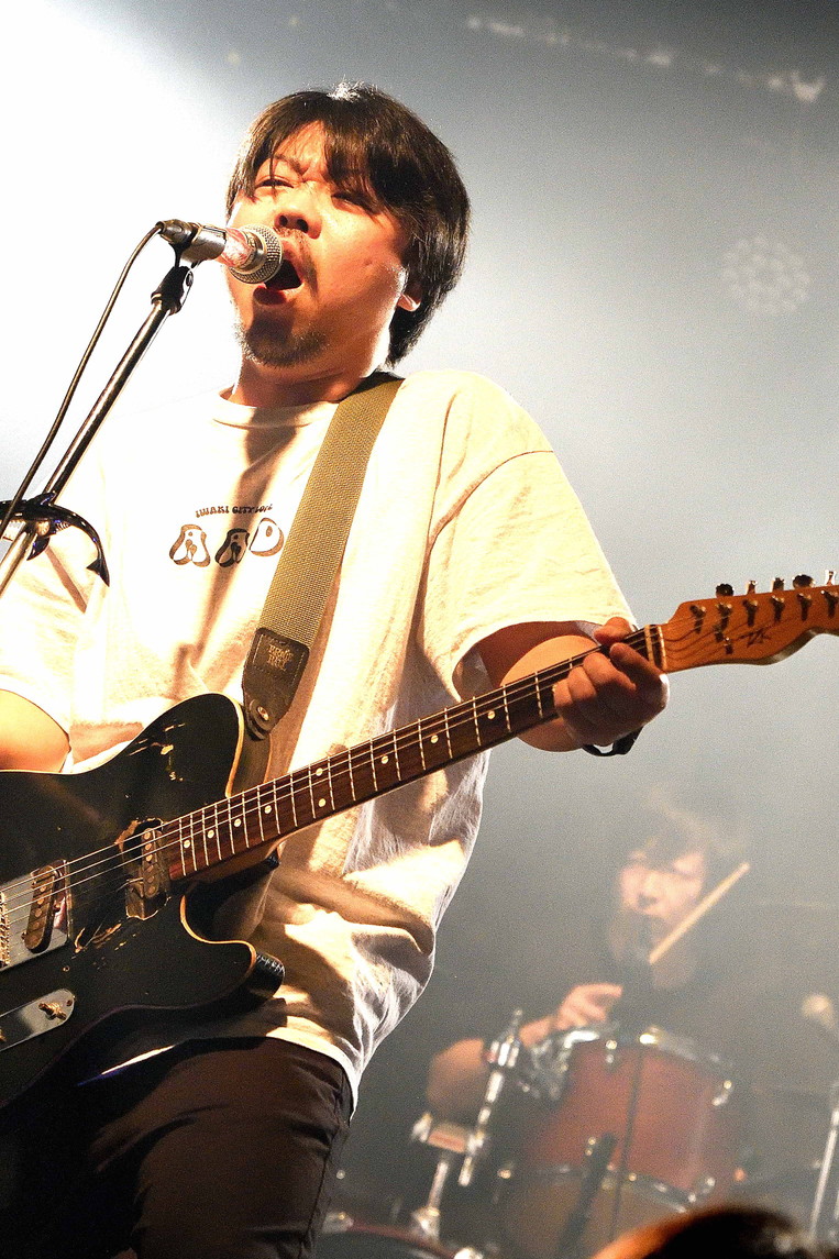 | (6)AAD AADさんのライブ拝見するのは1年ぶりくらい?Gt(Vo),Ba,Drのトリオ編成。オルタナティブエモロックバンド と形容されることもあるようですが、気取っていない、素直で実直な日本語の歌詞が心に沁みます。Gt(Vo)の青木さん・・・飲み過ぎ?酔っ払い過ぎ?飲みたくなるのも、サイコーに気持ちイイのも、まあ気持ちは良く分かりますが(苦笑)。その飲み過ぎ効果が良い方向へ作用して?いつに無く歌詞がダイレクトに飛び込んできて、印象的なライブでした(苦笑)。 |