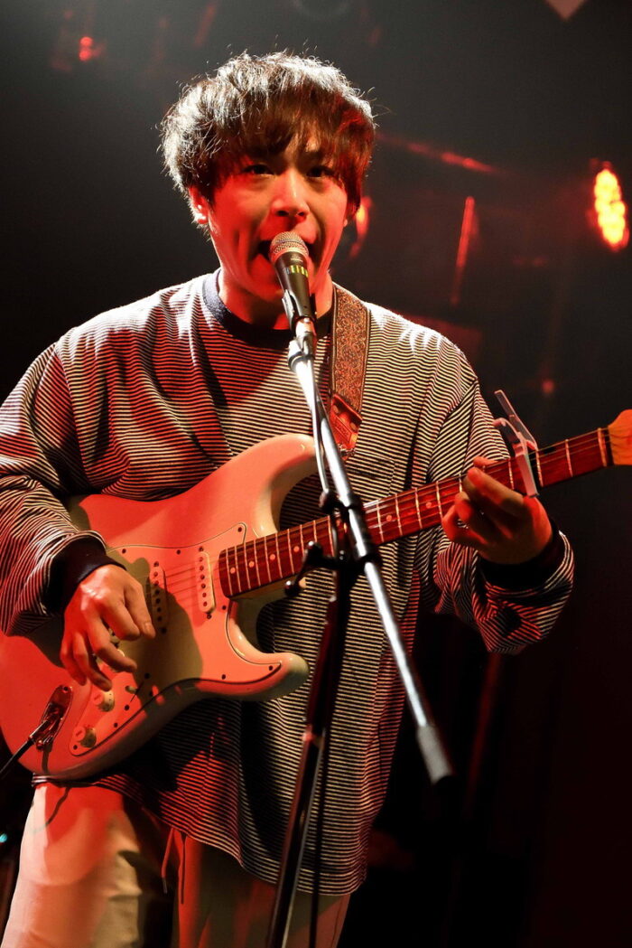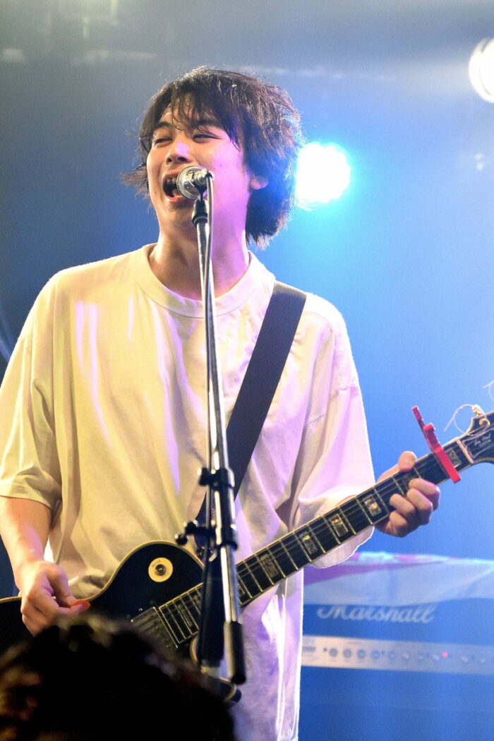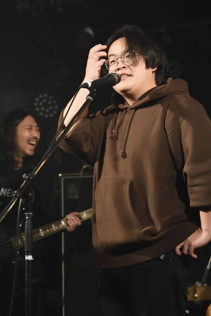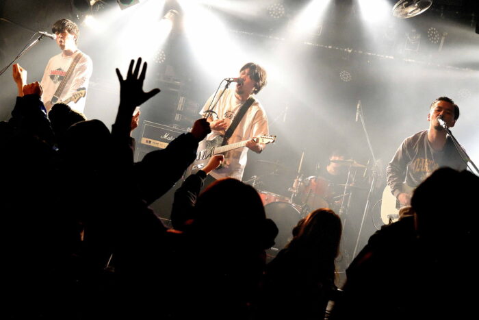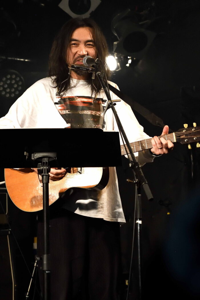 | (6)AAD AADさんのライブ拝見するのは1年ぶりくらい?Gt(Vo),Ba,Drのトリオ編成。オルタナティブエモロックバンド と形容されることもあるようですが、気取っていない、素直で実直な日本語の歌詞が心に沁みます。Gt(Vo)の青木さん・・・飲み過ぎ?酔っ払い過ぎ?飲みたくなるのも、サイコーに気持ちイイのも、まあ気持ちは良く分かりますが(苦笑)。その飲み過ぎ効果が良い方向へ作用して?いつに無く歌詞がダイレクトに飛び込んできて、印象的なライブでした(苦笑)。 |