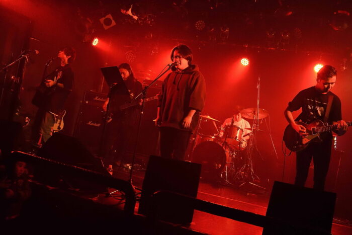 | (4)Ryo is gout attackers 年越しライブらしい特別編成の5人組。 to overflowevidence,AAD,Liqueur Cigarette という三つのバンドのメンバーより編成。演奏するのは、Copeland/コープランド(米国のエモ/インディ・ロック系のロックバンド)のカバー。なかなに通好みなのか?ヤッパリなのか?近年の音楽シーンについていけてないので(恥ずかしながら)、このバンドのカバーをする意味合いを読み取れないのですが、メンバー五人によって奏でられるサウンドが気持ちよくワタシの中で鳴り響いたのは確かですね。バンド名はボーカル担当Ryoさんが、痛風に苦しんでいる事から来ているとの事です。痛風、痛そうですね、マジ他人事と思ってはなりませんよ・・・汗。 |