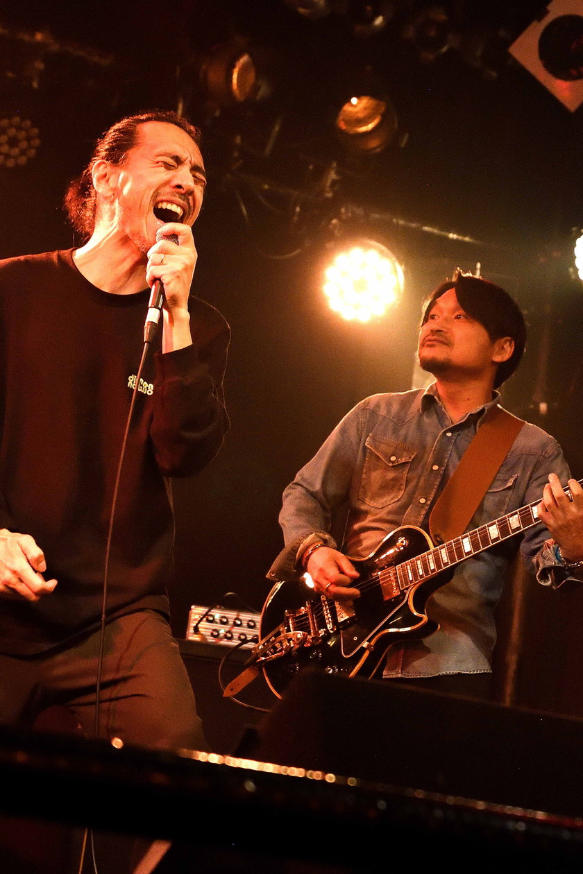 | (2)マーライオン with ICHC マーライオンは20年以上ぶりのライブでしょうか?いやあ、まじ久しぶりですね。Gt(Vo),Ba,Drのトリオ編成による渋いロックサウンドは健在で胸熱でした。 そして後半は、ゲストボーカルとゲストギタリストを迎えて、1990年代の伝説的なハードコアバンド【GRUBBY/グラビー・日本のバンド】のカバーを披露。ちなみに ICHC とは IWAKI CITY HARD CORE /いわきシティハードコア の略称で、1990年代終わりごろから2000年代初めにかけて、いわき市内で活動したバンドたちが盛んに使用したコトバです。 |