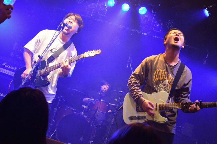 | (1)ZENTH ANGLE(越谷) ゼニスアングルさんは埼玉県越谷市より登場。Vo(Gt),Ba,Drのトリオ編成でメロディックなハードコアパンクを聴かせてくれました。初見のライブでしたが、本来は他にメンバーが居るようで四人ないしは五人で活動されているようです(調べましたが、詳しく分からず)。メロディックだけど、速くて荒々しい、そんな印象を持ちました。まじカッコいいです。 |
