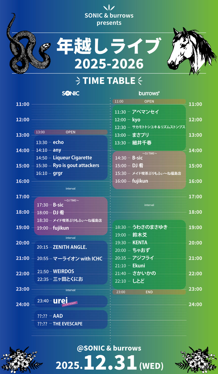 ライブレポート No.340 2025.12.31(木)クラブソニックいわき 年越しライブ 2025-2026